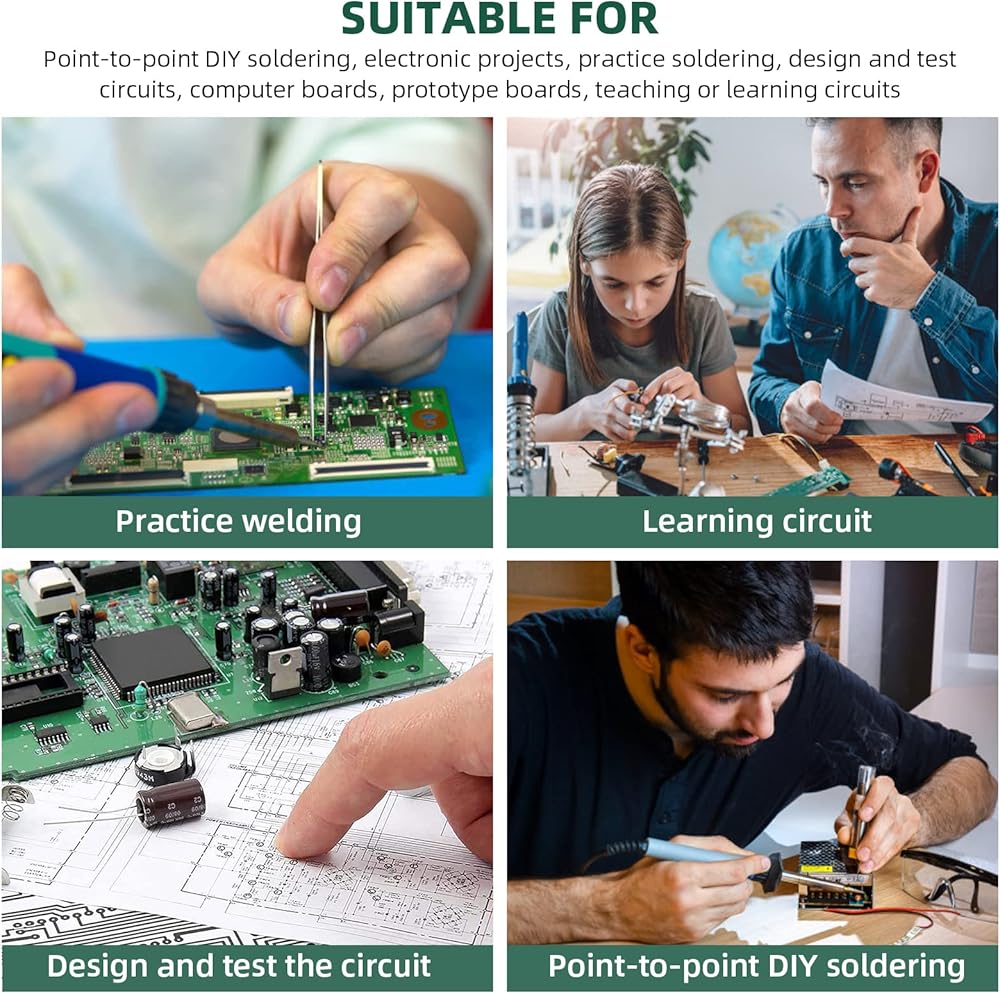 ♚ قطعتان من لوحة PCB القابلة للحام على الوجهين، تمكنك من نقل دائرتك وأسلاكك من لوحة التوصيل دون إعادة قطع الأسلاك أو تغيير تخطيطك، لمجموعات Arduino والتجارب الإلكترونية والمشروعات التي تصنعها بنفسك.