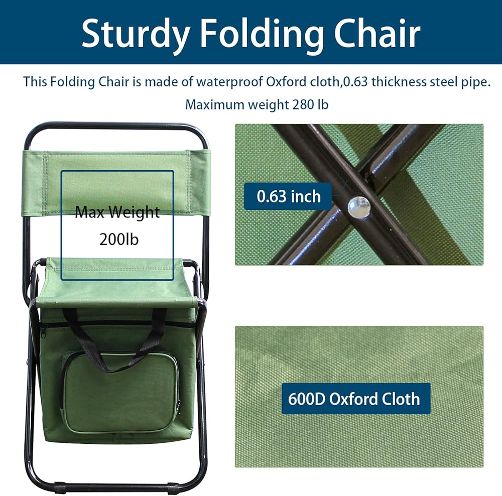 Durable Material: The frame of fishing chair with cooler is made of thickened 16 mm steel pipe , the cloth is made of double layer oxford fabric, weight only 2.42 LBS, but it is strong enough to hold 280LBS