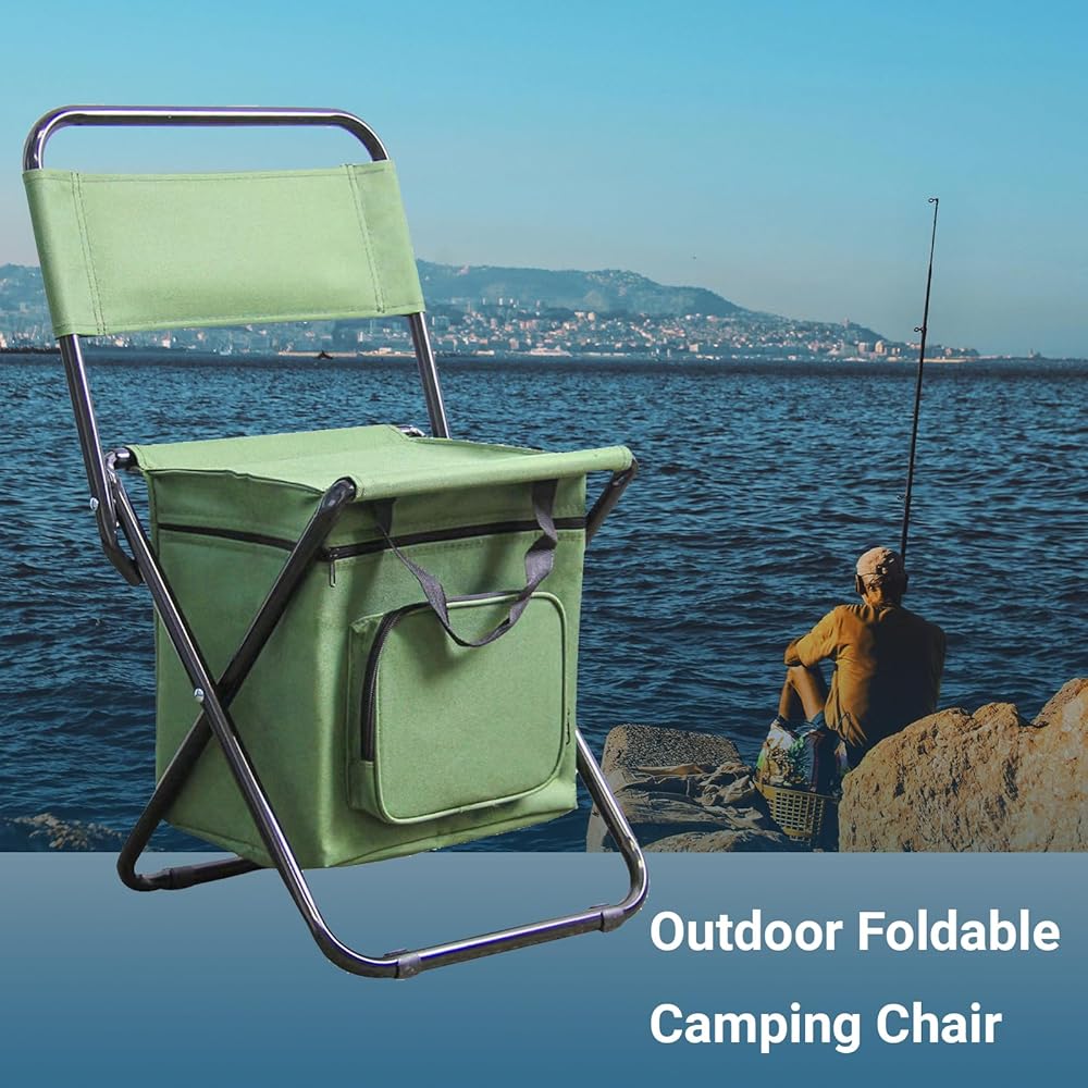 Folding Camping Chair This camping field chair is made of high quality steel pipes and durable oxford fabric. Folding Camping Chair designed with a large Cooler bag that you can keep drink, snack. Foldable chair will not take much room and it has two straps for convenient carry. Perfect for camping, fishing,traveling, hiking, picnics, and beach.