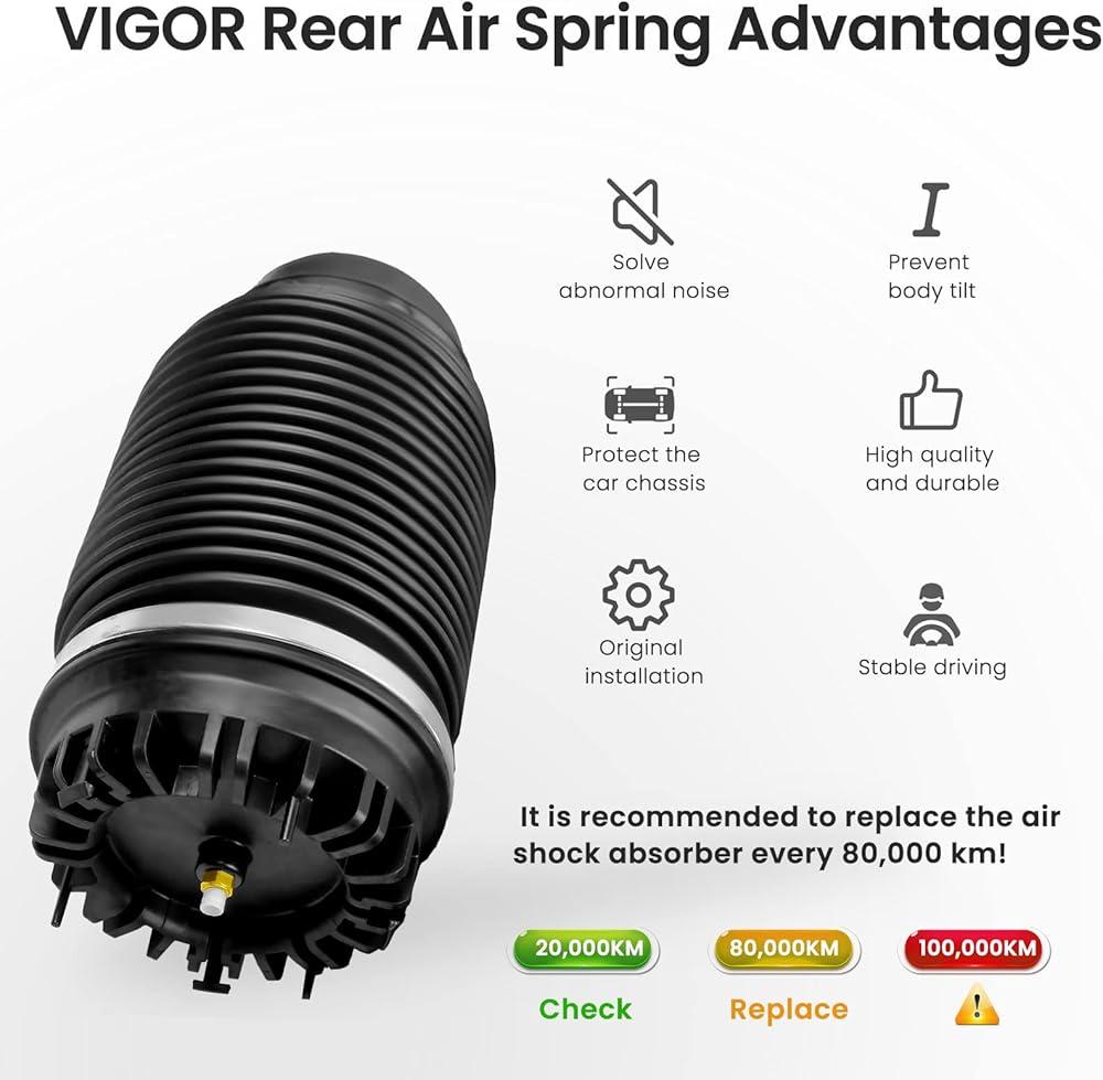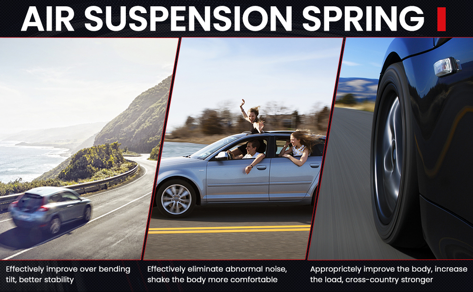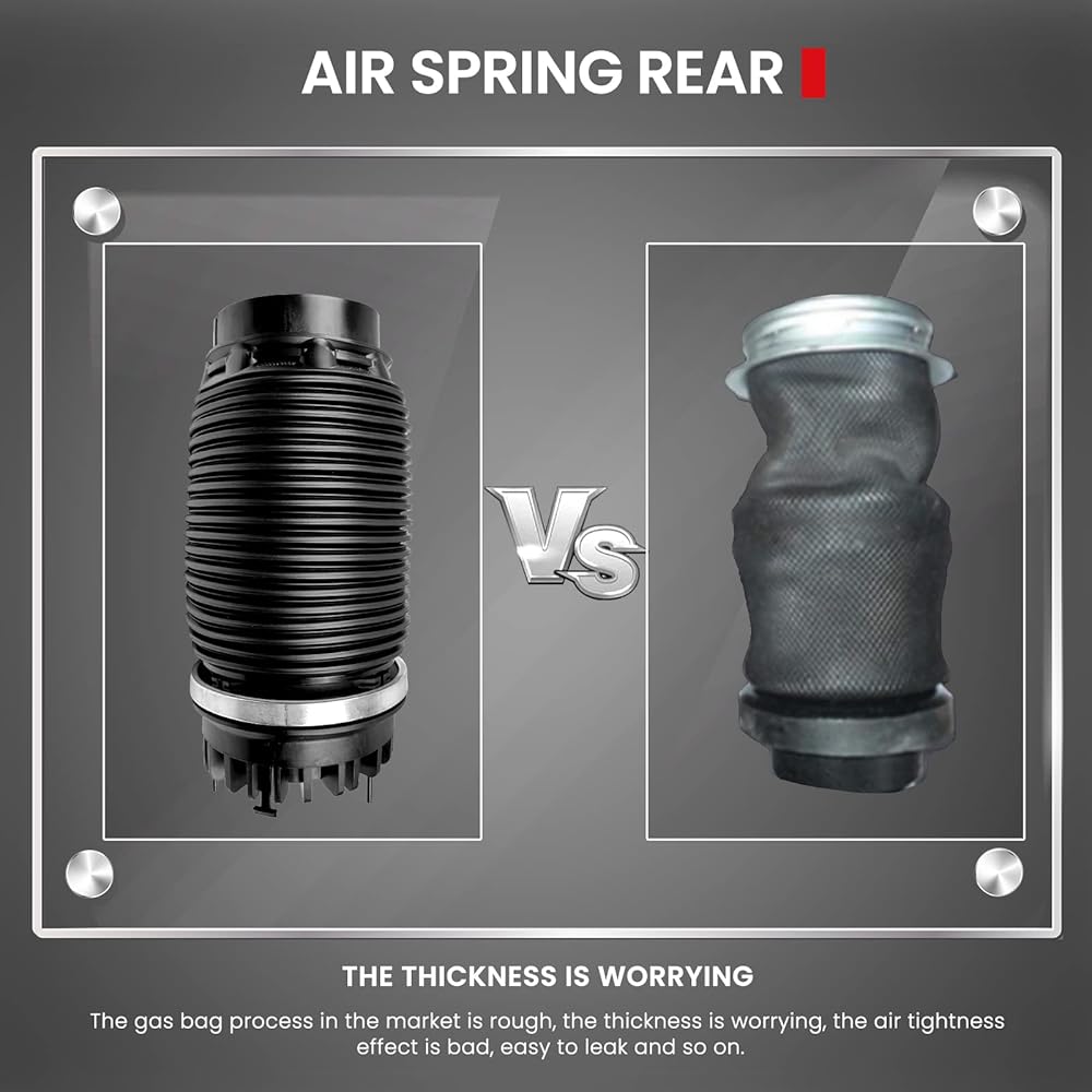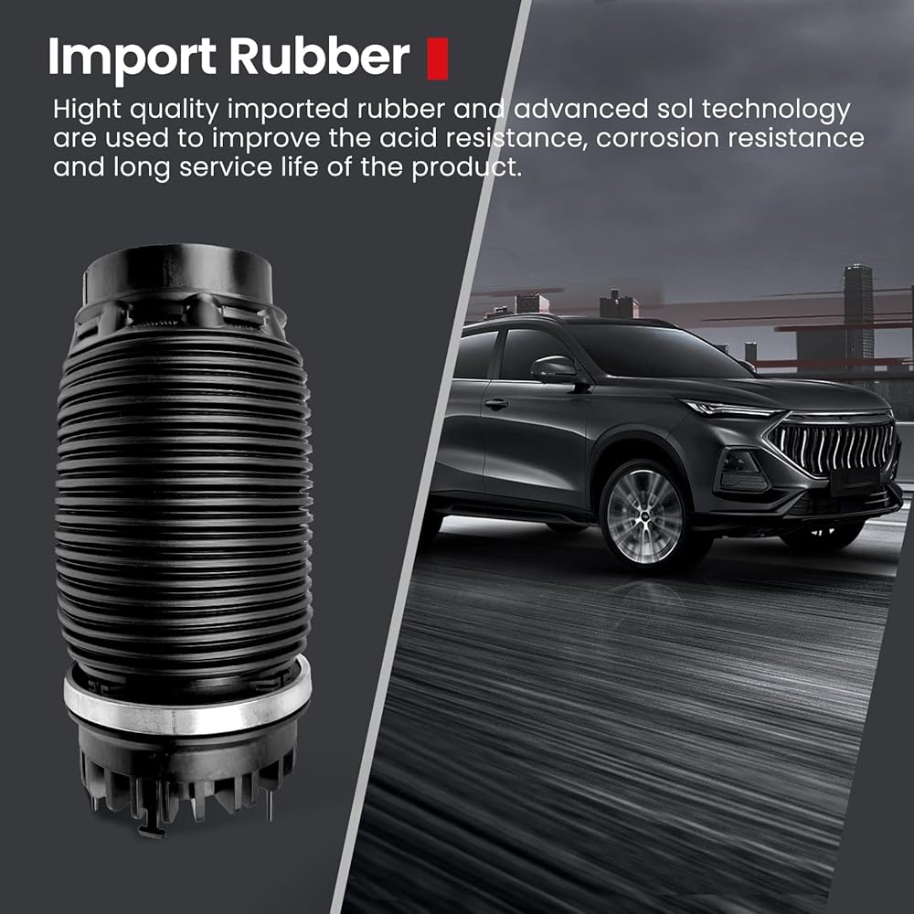 【جودة ممتازة】الرحلة الهوائية مصنوعة من مطاط مستورد عالي الكثافة، وأكثر متانة وأداء تحميل أفضل من تعليق الهواء العادي، مما يوفر لك تجربة قيادة أفضل بعد الاستبدال.