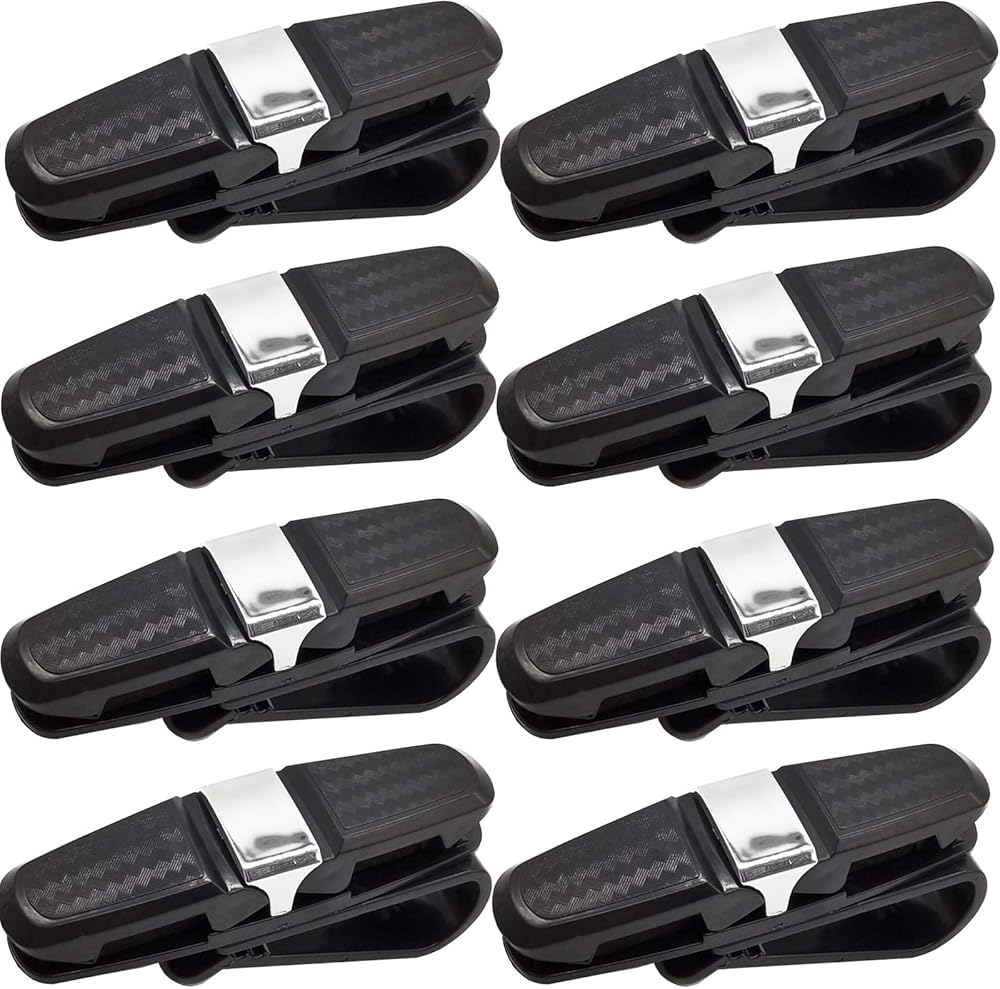 Package include: 8 Pack glasses holder for car. Double-ends car sunglasses clip: the glasses holder for car visor can hold 2 pairs of sunglasses and an extra card, keep your glasses away from dropping, scratching or getting lost, a great organizer for your glasses.