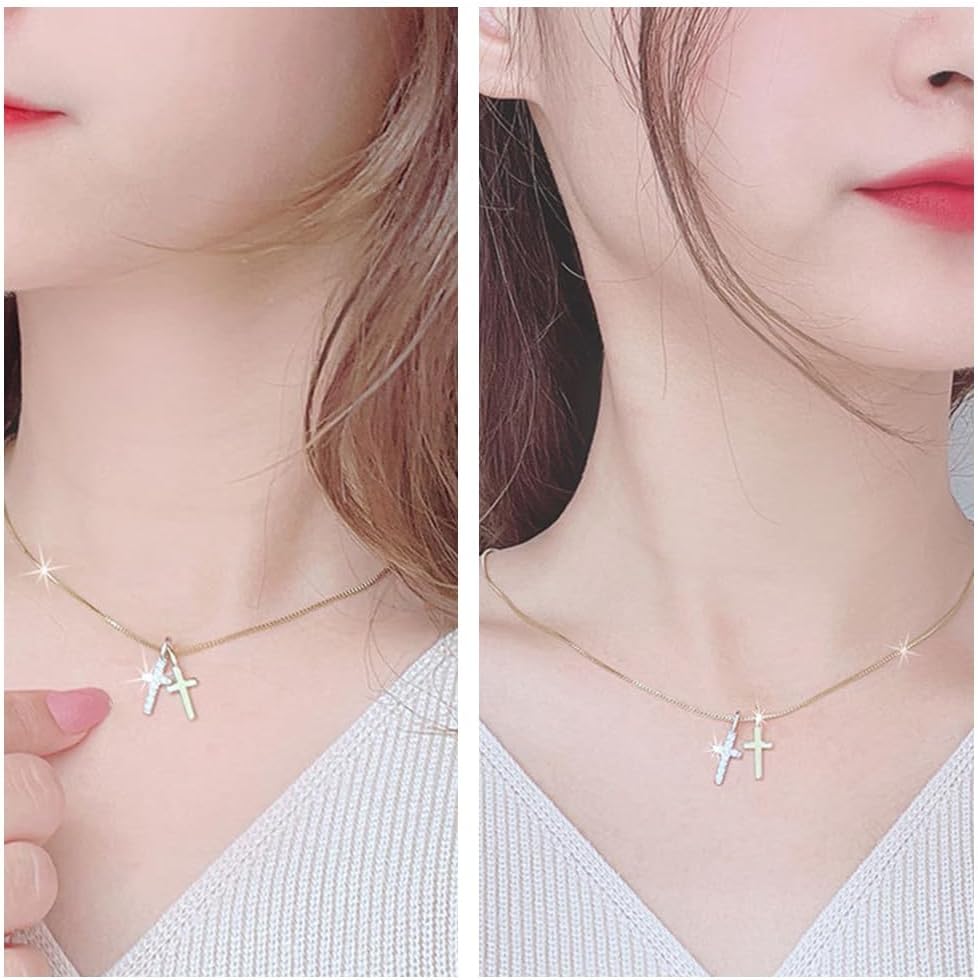 Make a stylish statement with this dainty double cross necklace gold and earrings set, perfect for women and girls