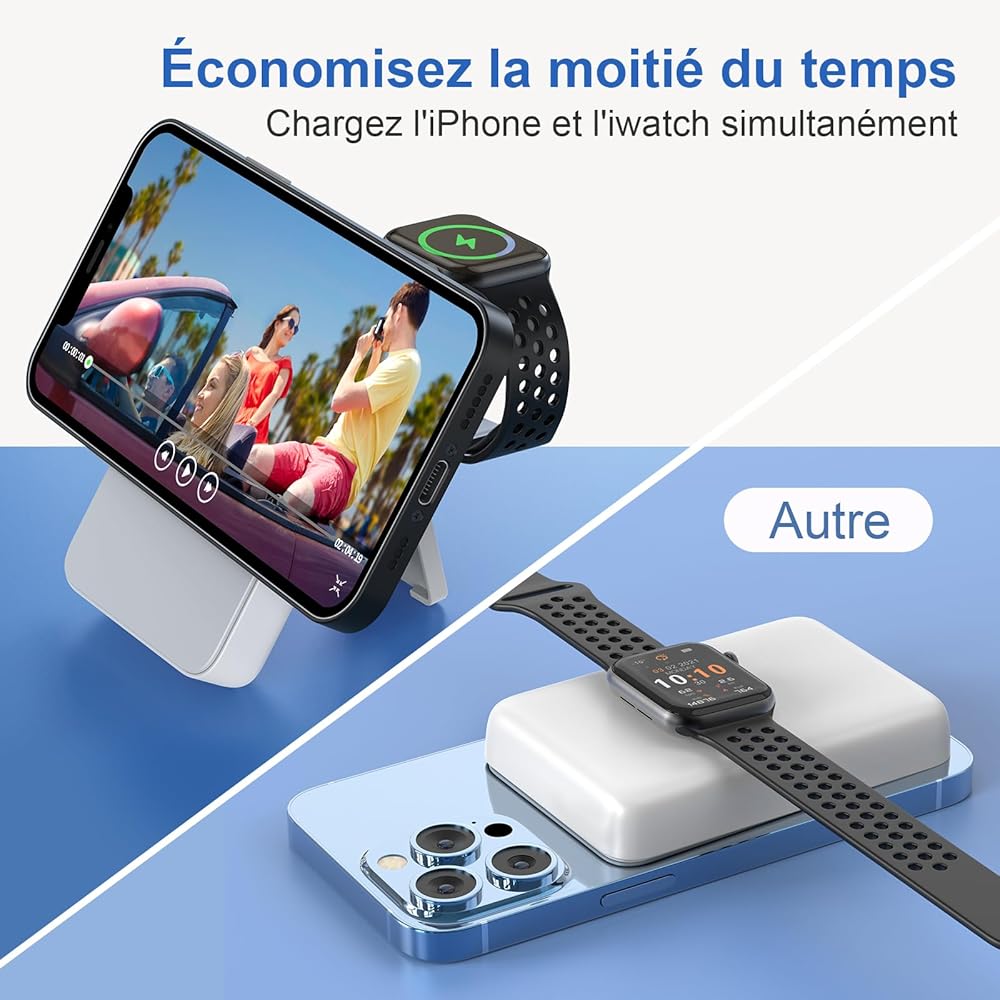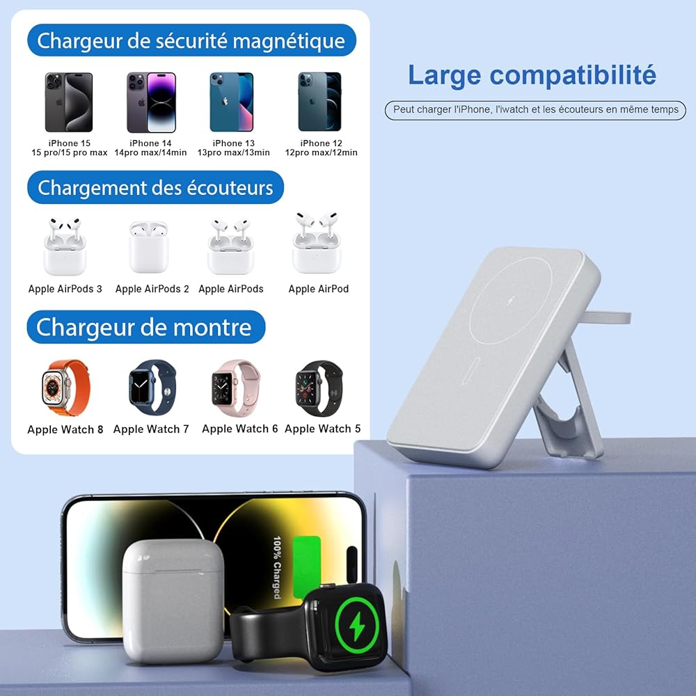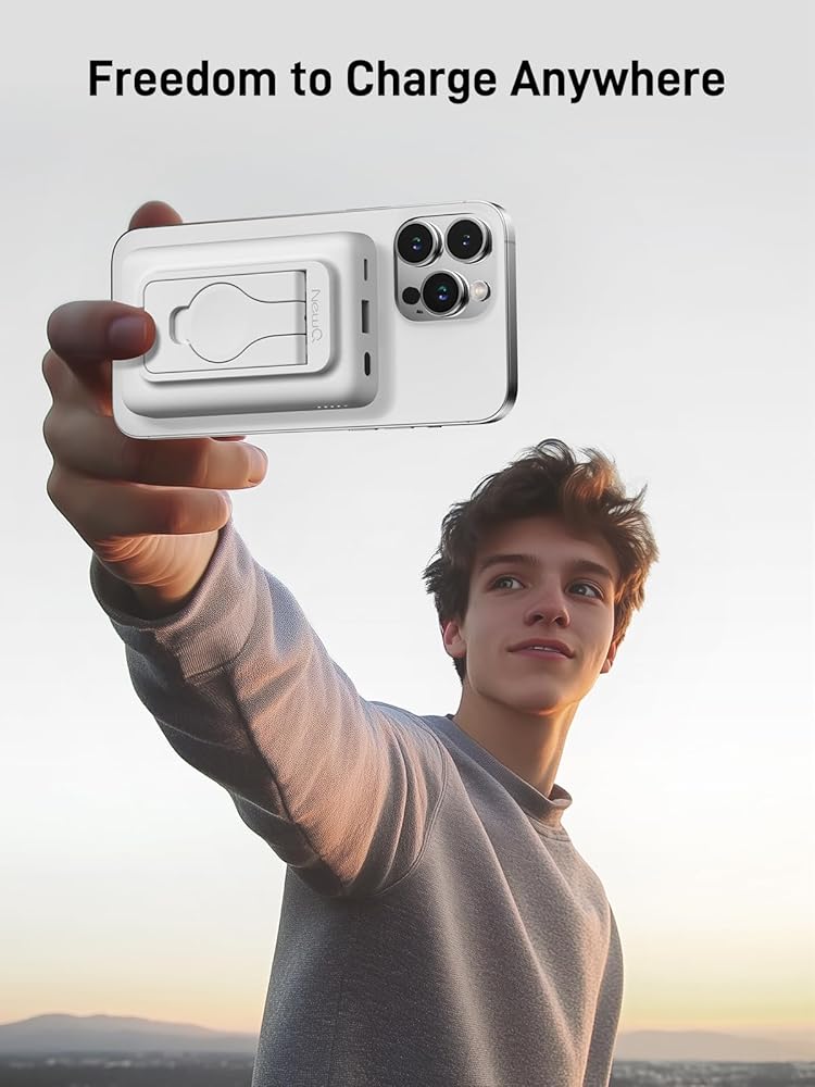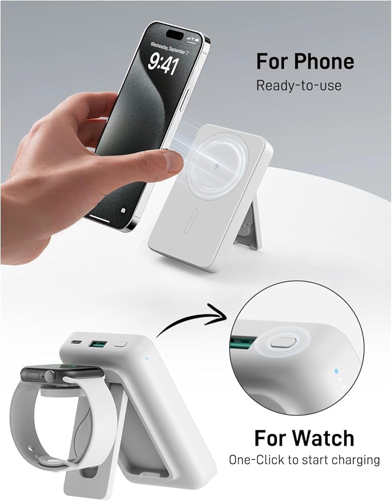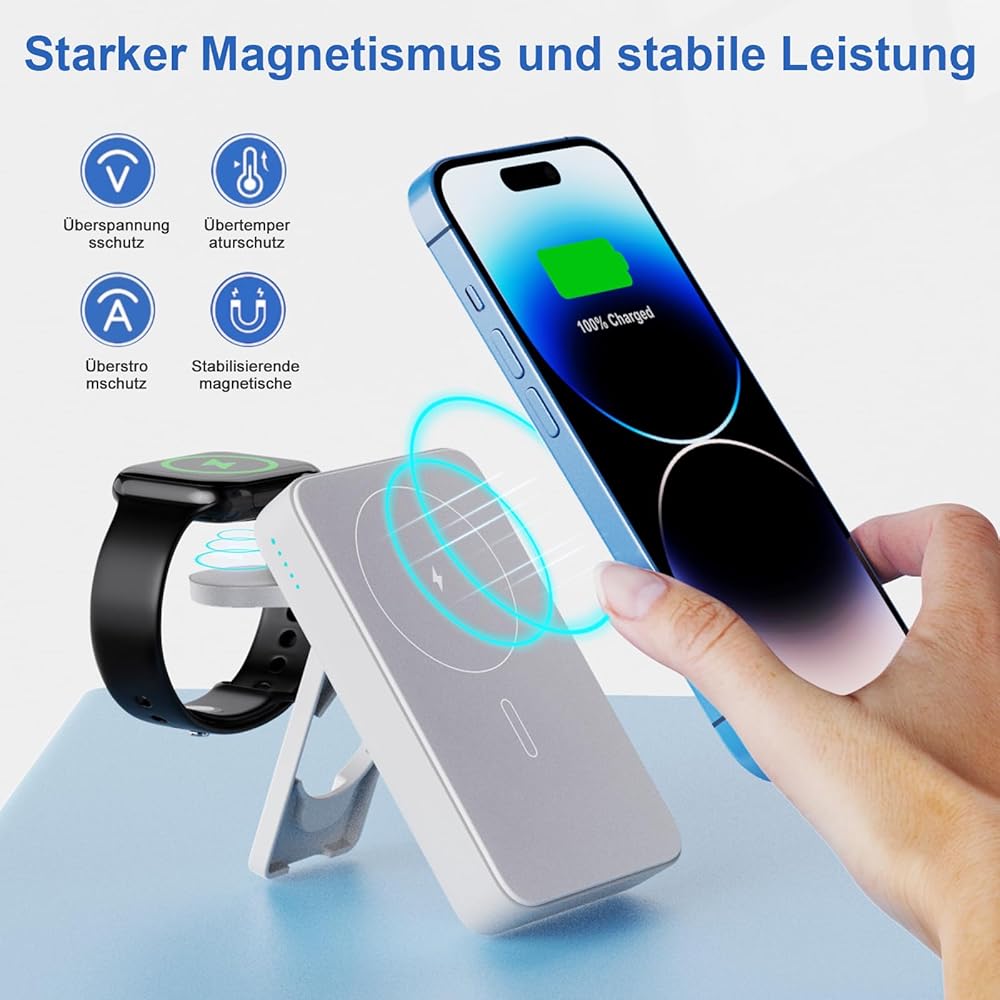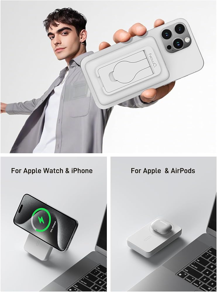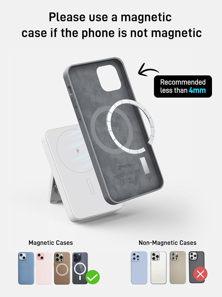 【بنك طاقة محمول لاسلكي مغناطيسي】: حزمة البطارية المغناطيسية مناسبة لجميع سلسلة iPhone 15/14/13/12، ضعها على هاتفك وسيتم شحنها. كحامل هاتف لرفع بنك الطاقة اللاسلكي لأعلى، مما يسمح لك بمشاهدة الأفلام بسهولة من أي زاوية، يمكن حمل بنك الطاقة المحمول في رحلات العمل أو السفر أو الطائرات (فقط للهاتف أو الحافظة المغناطيسية).