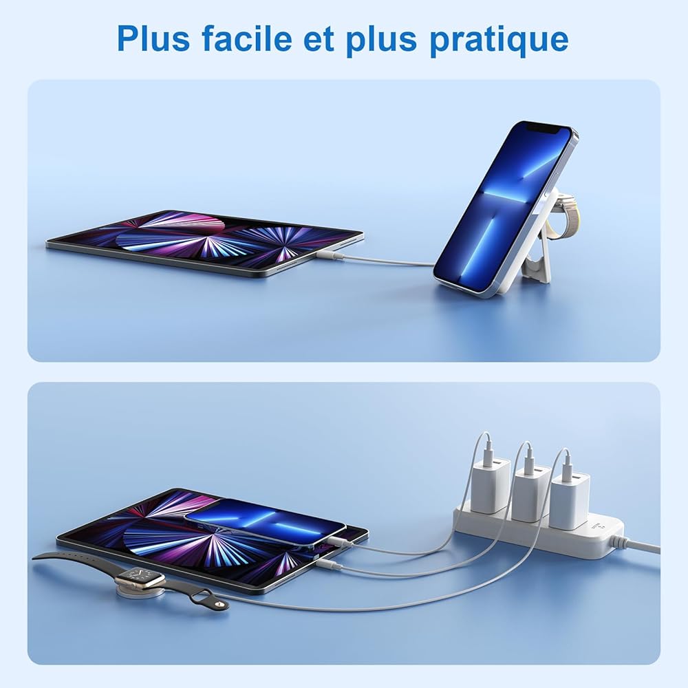【محطة شحن لاسلكية】: الشاحن اللاسلكي مع حامل iWatch، يحمل ويشحن هاتف iPhone وApple Watch في مكان واحد، مما يساعدك على إنهاء عمر السلك الفوضوي وترتيب مكتبك. 3 قواعد شحن لخيارات شحن مختلفة حسب حاجتك (متوافقة فقط مع iWatch، ولا تدعم ساعة Galaxy أو غيرها).