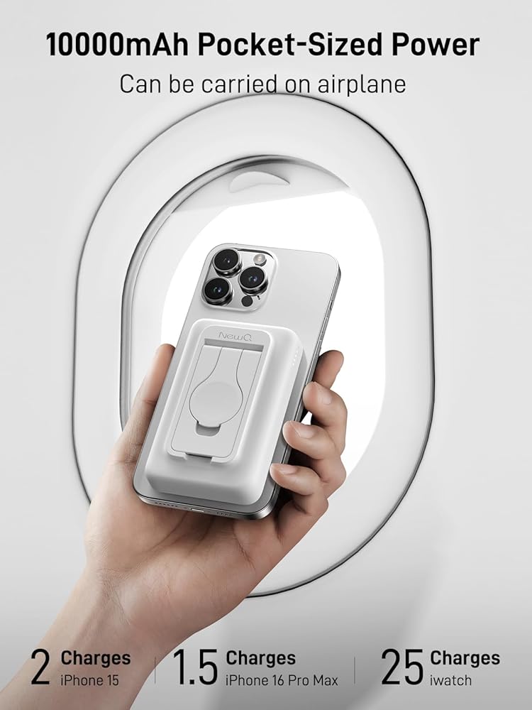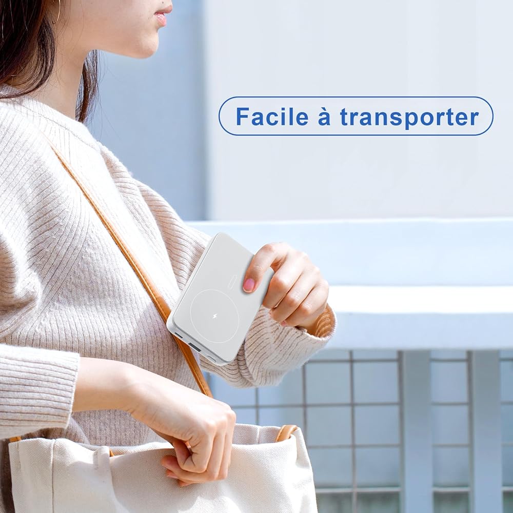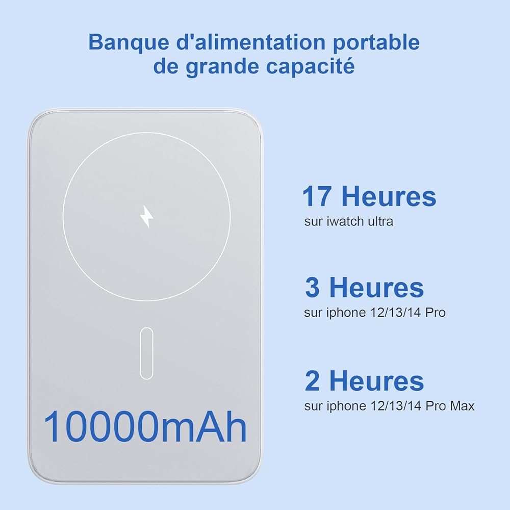 【شحن سريع 18 وات PD 】: يمكن لبنك الطاقة اللاسلكي بقدرة 10000 مللي أمبير في الساعة تحقيق إخراج شحن سريع PD 18 وات وإدخال PD 15 وات من خلال الشحن السلكي USB-C. شاحن محمول لاسلكي يدعم الشحن السريع اللاسلكي بقوة 5 وات و7.5 وات و10 وات و15 وات كحد أقصى، كما أن بنك الطاقة المغناطيسي ذو السعة الكبيرة رائع لك للسفر أو الاستخدام في حالات الطوارئ، مريح وعملي.