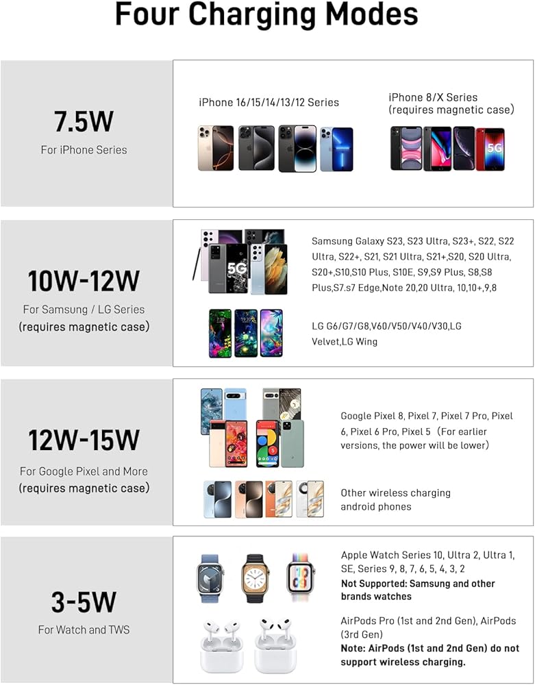 【الطاقة في 1 ثانية】: مدمج بمغناطيس مخصص، يوفر حامل الشاحن اللاسلكي الآمن محاذاة دقيقة وآمنة لأجهزتك الإلكترونية. يضمن الاتصال المغناطيسي اللاسلكي الصلب الراحة والأمان عند شحن أجهزتك وحملها في أي اتجاه أو صورة أو منظر طبيعي.