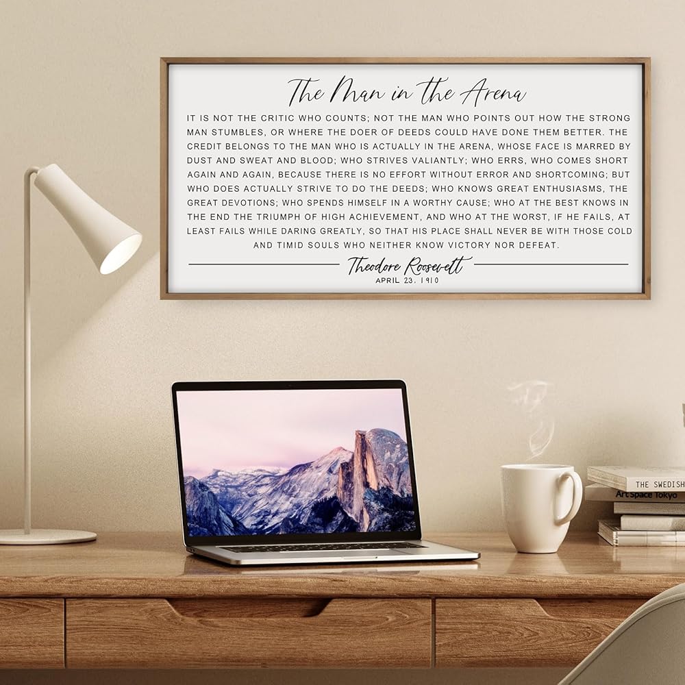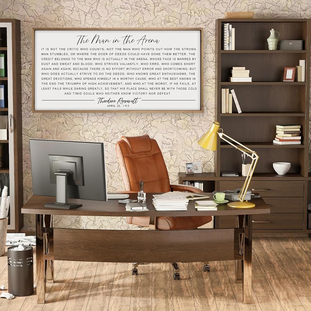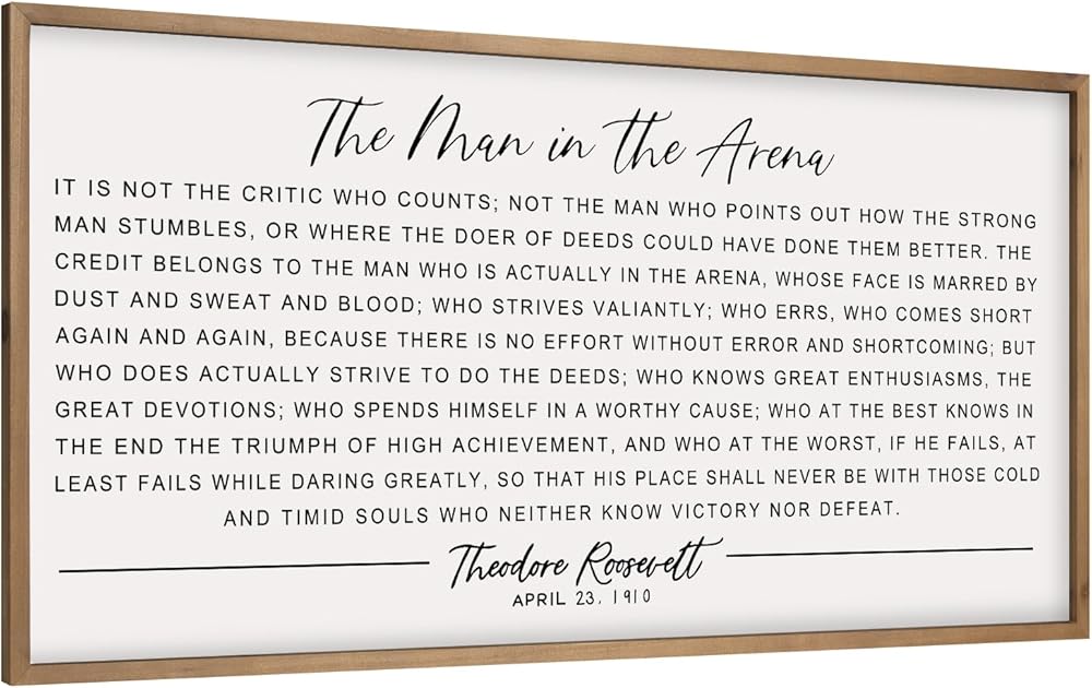This is THEODORE ROOSEVELT speech in history. Perfect for an entrepreneur office, on the wall in garage/shop, Studies classroom, over your bed, men cave, the inspirational words and a good fit for the person that has had struggles in their life, but come out winning on the other side.