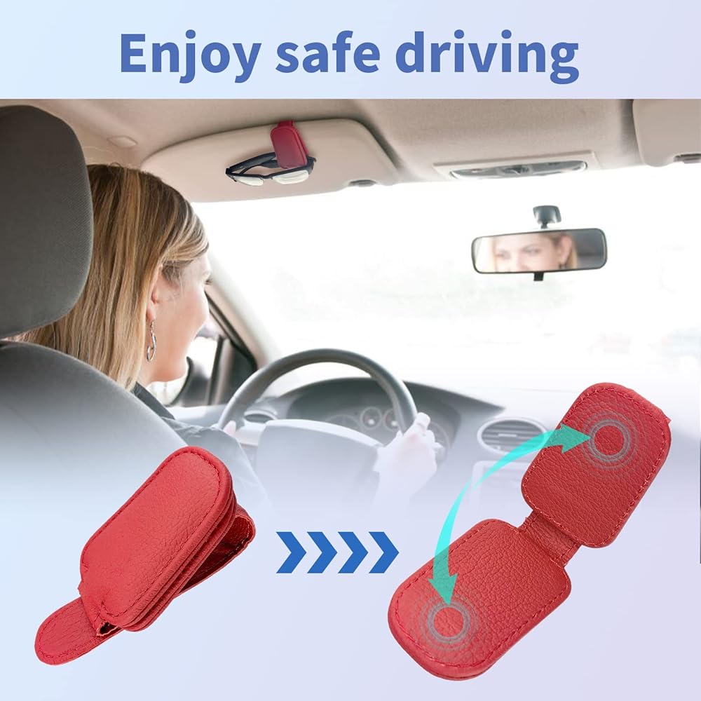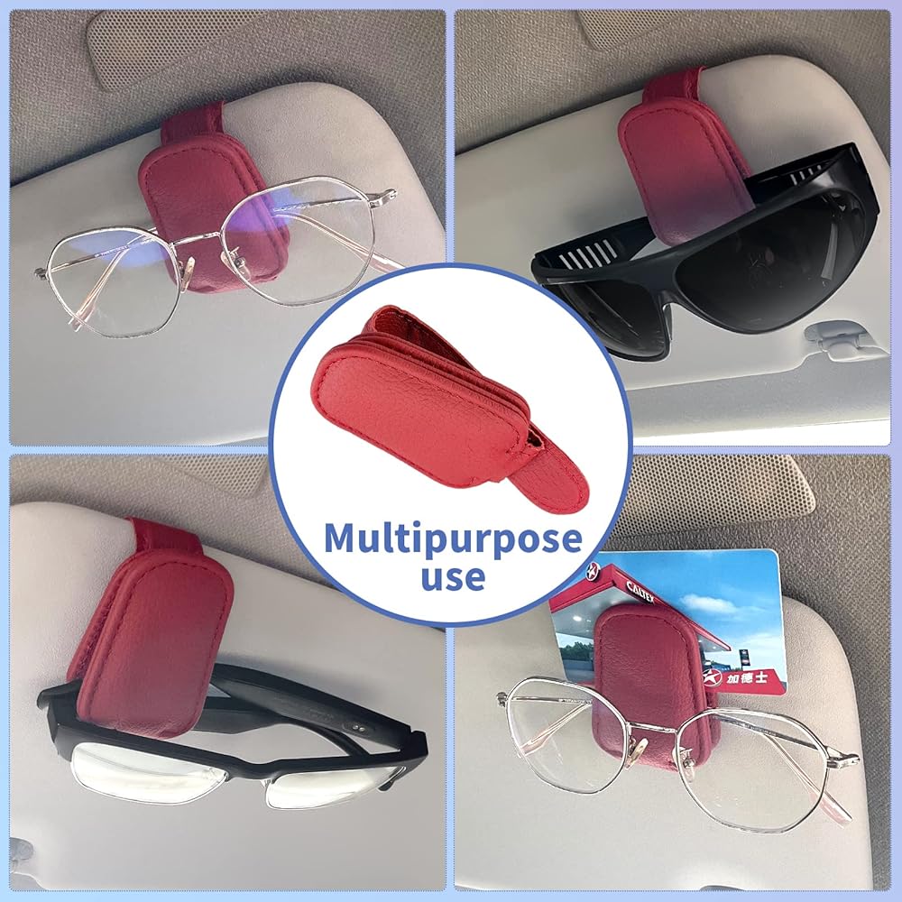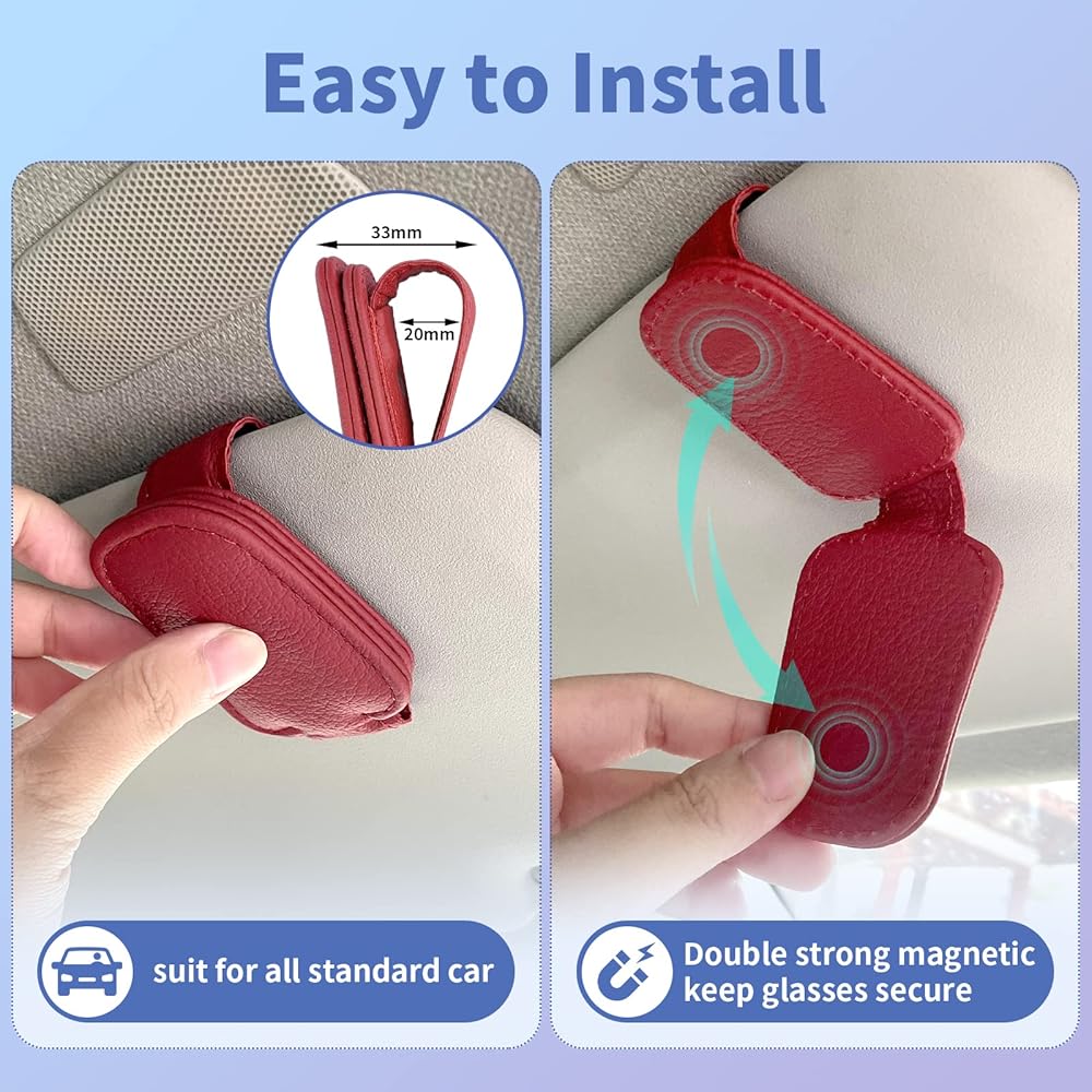 واقي سيارة من النظارات الشمسية المغناطيسية - يستخدم حامل النظارات الشمسية الأحمر Genxenon Universal لواقي السيارة من الشمس تصميمًا مغناطيسيًا، مما يوفر طريقة آمنة وسهلة لربط حامل النظارات والنظارات الشمسية بمنظم حاجب سيارتك. ملحوظة: لا يمكن استخدامها للبطاقات ذات الرقائق والخطوط
