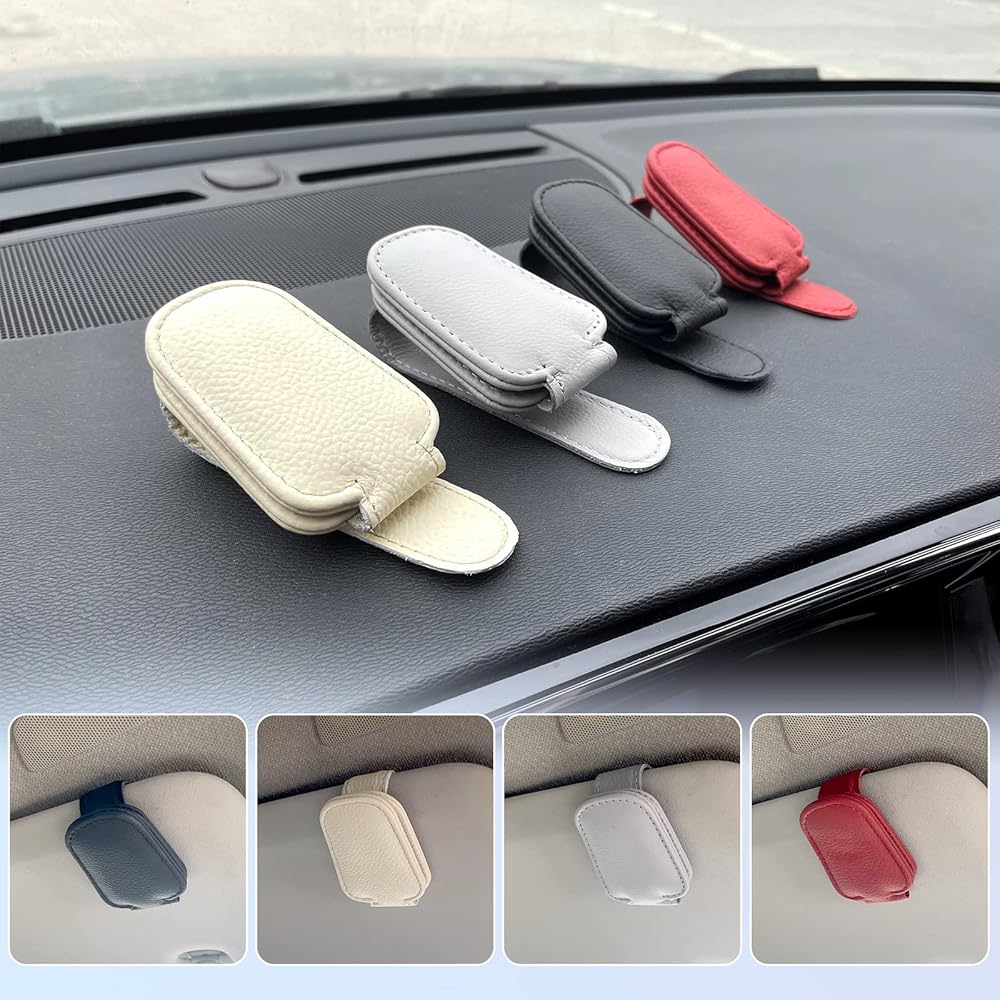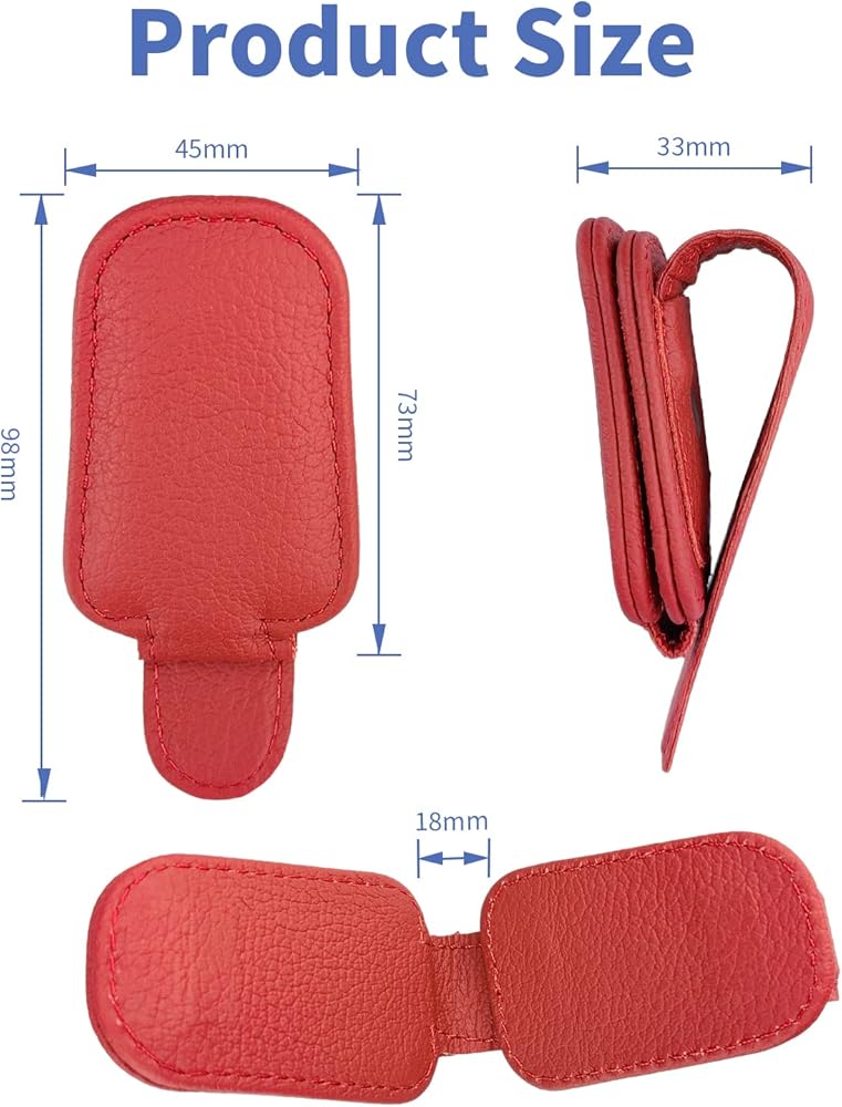 مادة جلد البقر الأصلي بالكامل - جلد ناعم يغطي مشبك النظارات بالكامل، وهو متين ومقاوم للخدش، مع ملمس رقيق لن يضر نظارتك وقناعك. مظهر حامل النظارات الشمسية أنيق.