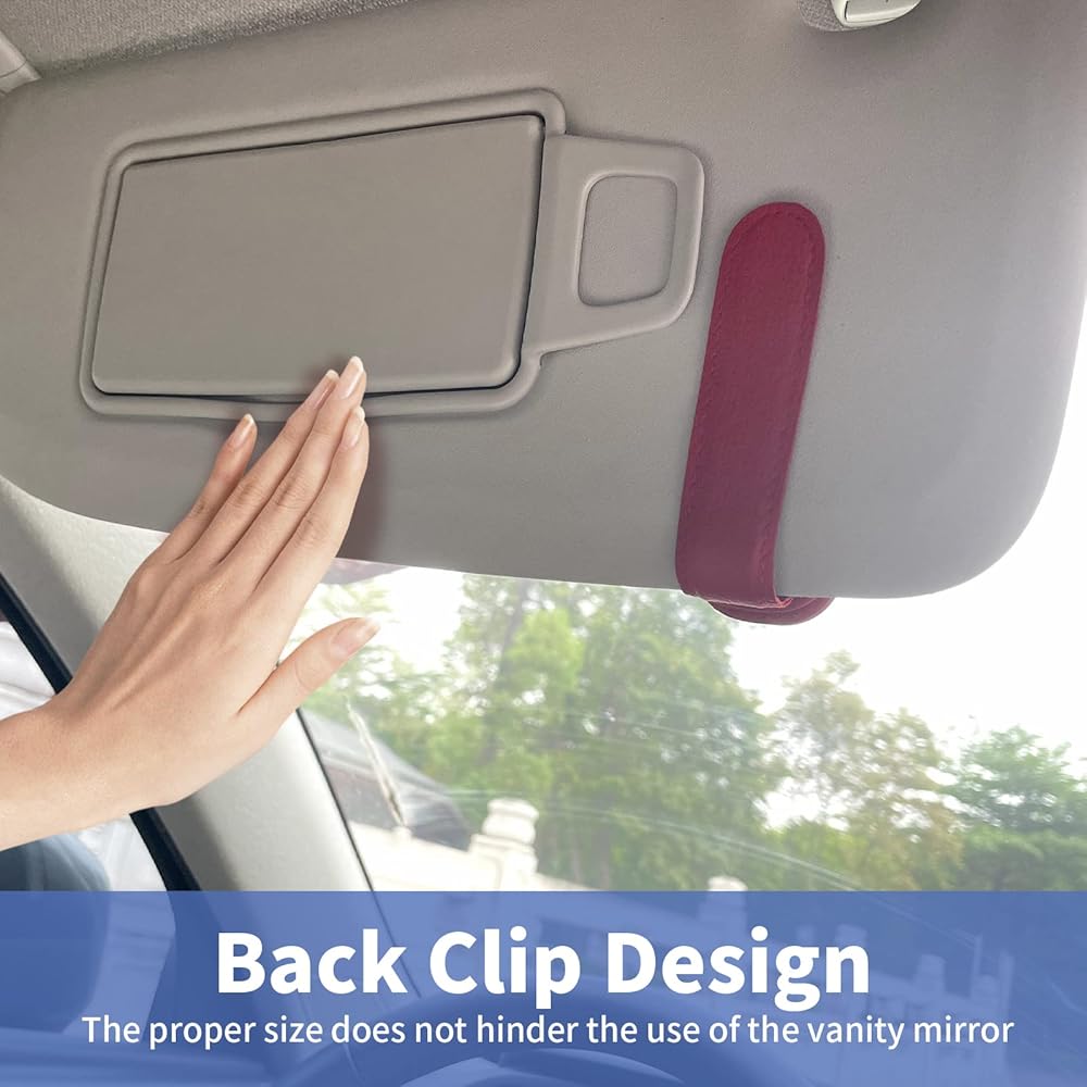تصميم المشبك الخلفي - يسمح هذا بتثبيت مشبك النظارات الشمسية بشكل آمن على مظلة السيارة دون السقوط، مع عدم إعاقة استخدام المرآة أيضًا. وهي سهلة التركيب للغاية، ما عليك سوى تثبيت مشبك النظارات الشمسية للسيارة على واقي الشمس.