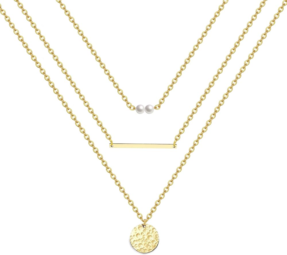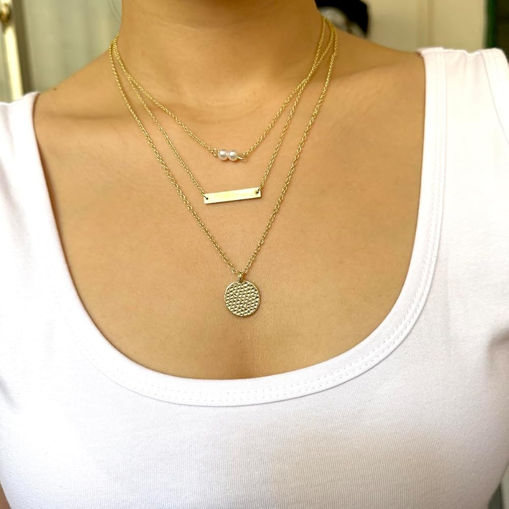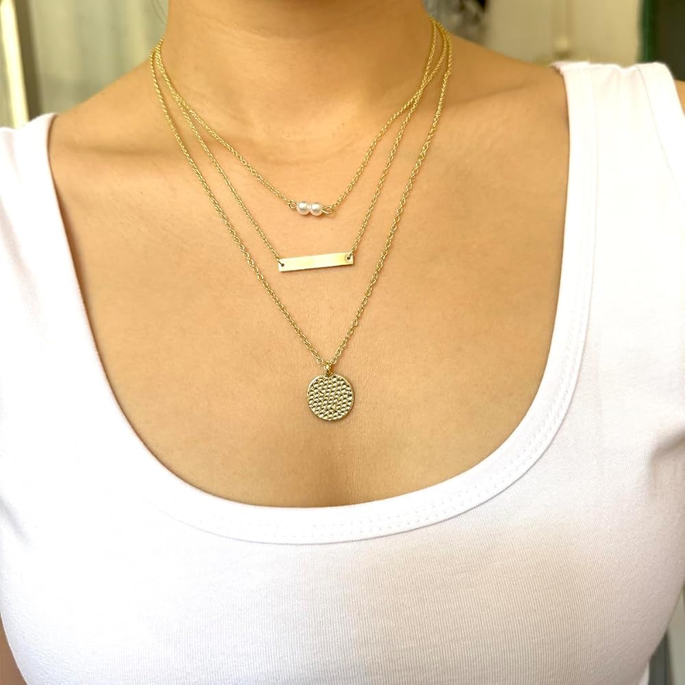 Gender: Women, Girl, Main Material: Copper Base ,14K Gold Plated, 3 Layered Pendant Necklaces in Together, Weight: 20g/Set.