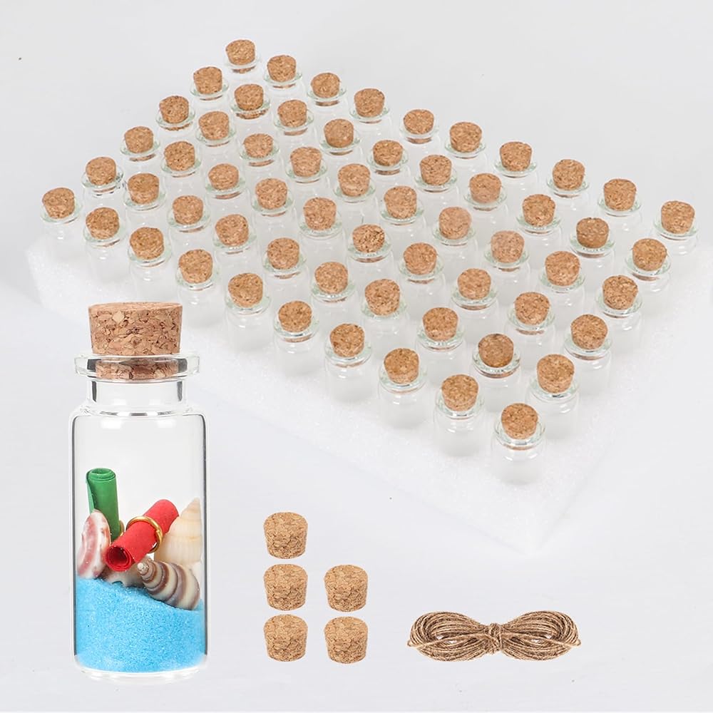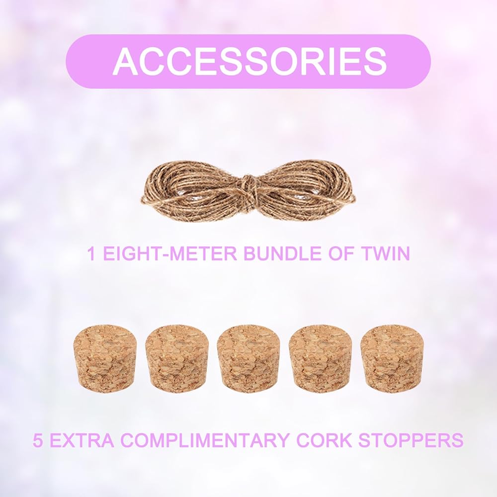 Set Includes: 60 bottles with cork stoppers, 1 twine, 5 extra corks;