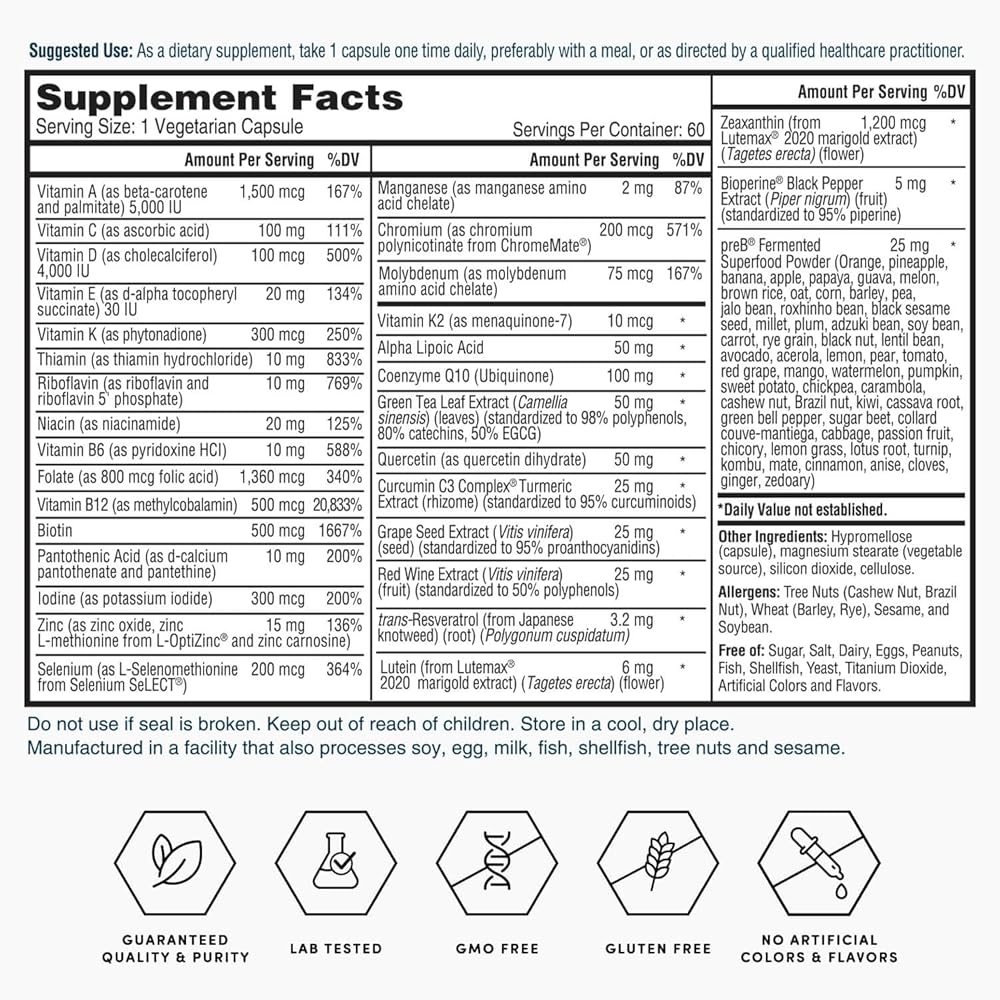الأيض الصحي: تحتوي الفيتامينات اليومية المتعددة من Nature's Lab Gold One على ChromeMate، وهو شكل من عناصر الكروم الأساسية التي تلعب دورًا في عملية التمثيل الغذائي للدهون والكربوهيدرات والبروتينات.*
