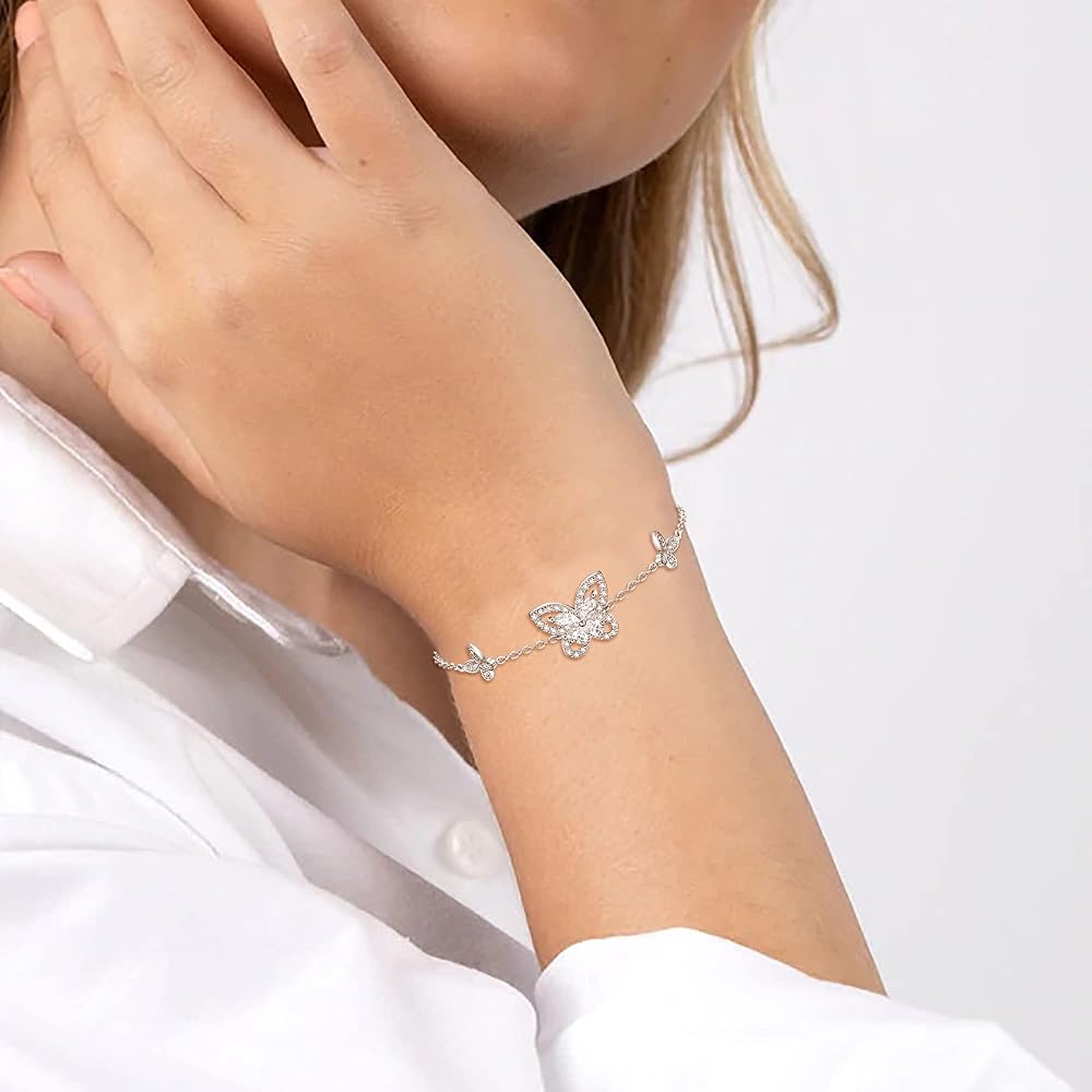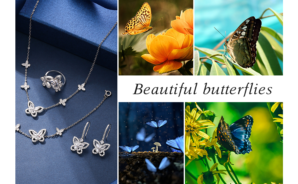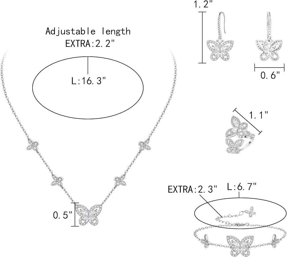 • 【المادة】مجموعة مجوهرات الفراشة مصنوعة من النحاس البيئي ومطلية بالفضة مع زركونيا مكعب، وخالية من الرصاص والنيكل، ولا تسبب الحساسية، وغير ضارة لبشرتك، وسطح مصقول عالي الجودة، وملمس ناعم عند الارتداء، ولامع وأنيق.
