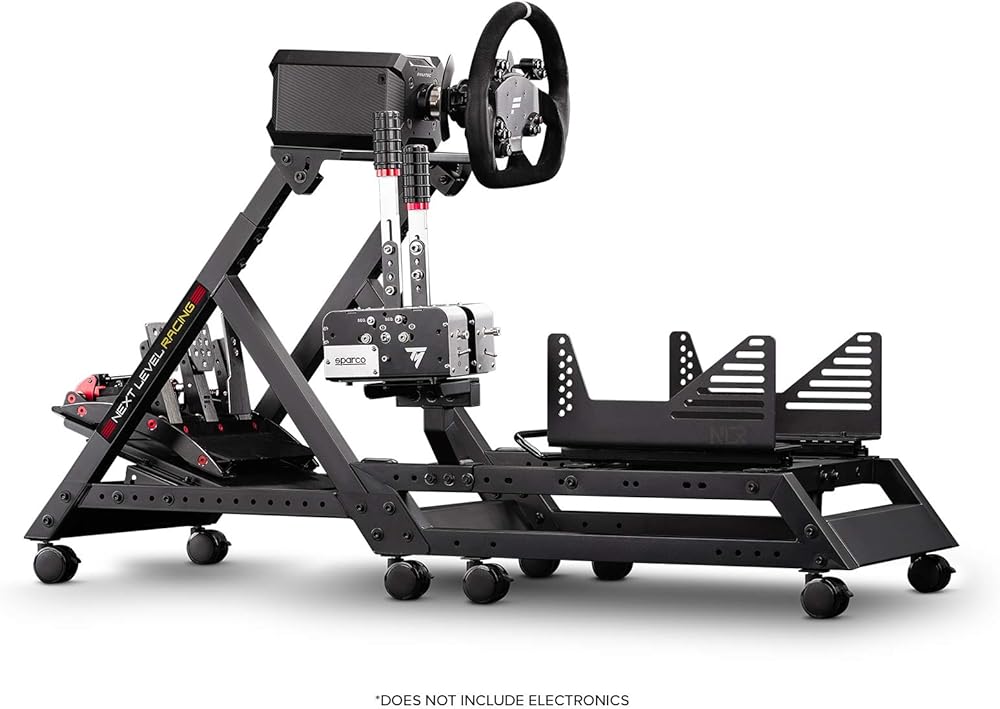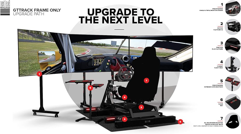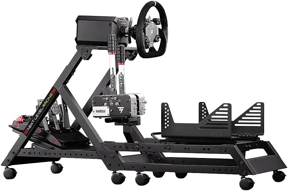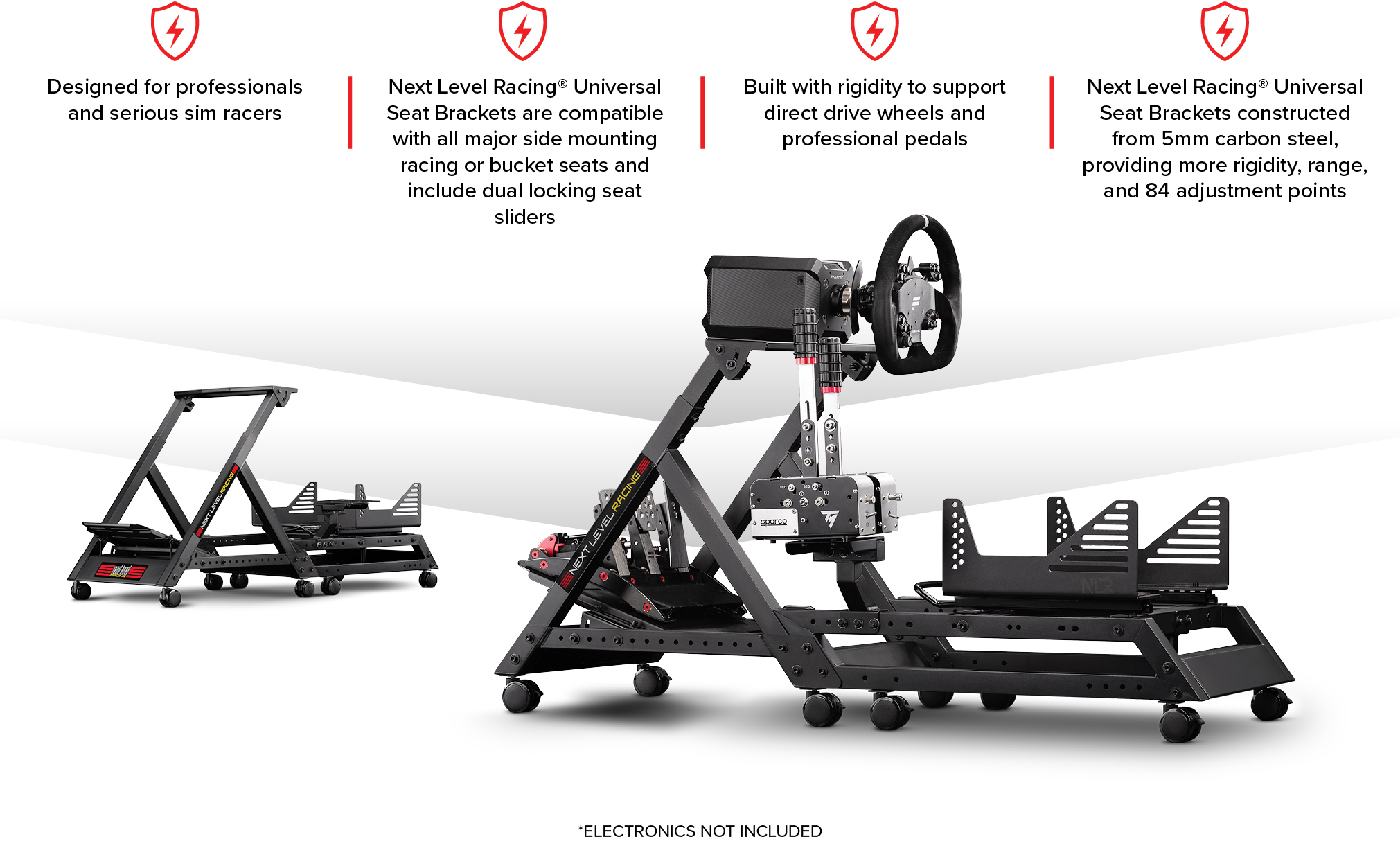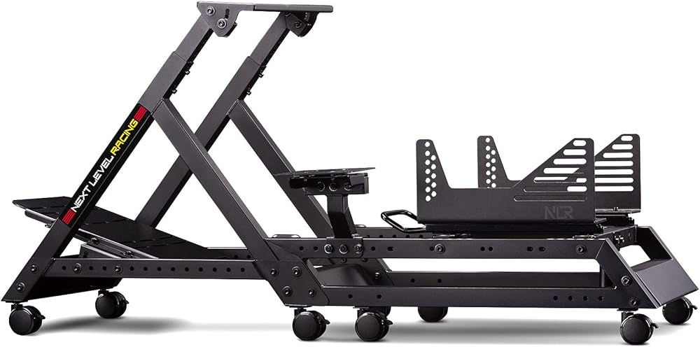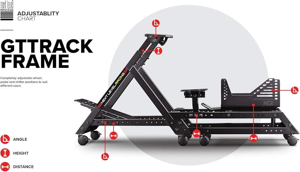 The Next Level Racing GTtrack frame is the ultimate cockpit frame for serious sim racers looking for rigidity, complete adjustability, and a true race car seating position. The complete rigidity of the GTtrack frame allows it to support direct drive wheels and professional pedal sets as well as being compatible with all major wheel and pedals including Thrustmaster, Logitech, and Fanatic. The Next Level Racing Universal seat Brackets are constructed from 5mm carbon steel to provide more rigidity, range, and refinements to suit all racing seats on the market for the best user experience. The GTtrack frame is compatible and predrilled for Next Level Racing motion Platform V3 and traction plus platform for quick assembly. With the addition of the f-gt/GTtrack combat flight Pack, The GTtrack frame can turn in to a flight cockpit for flight enthusiast.