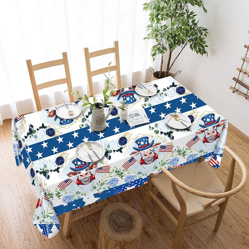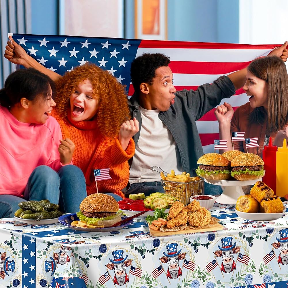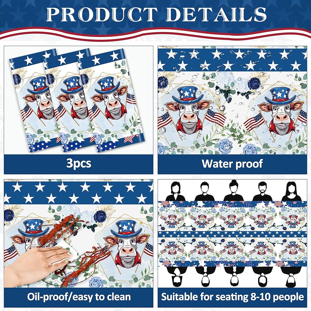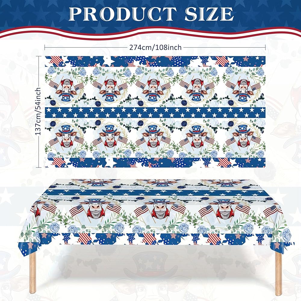 مفرش طاولة من Highland Cow في الرابع من يوليو - 3 قطع من مفرش طاولة بلاستيكي بعلم أمريكي وطني (54 بوصة × 108 بوصة) أغطية طاولات وطنية لتزيين لوازم الحفلات ليوم الاستقلال ويوم المحاربين القدامى