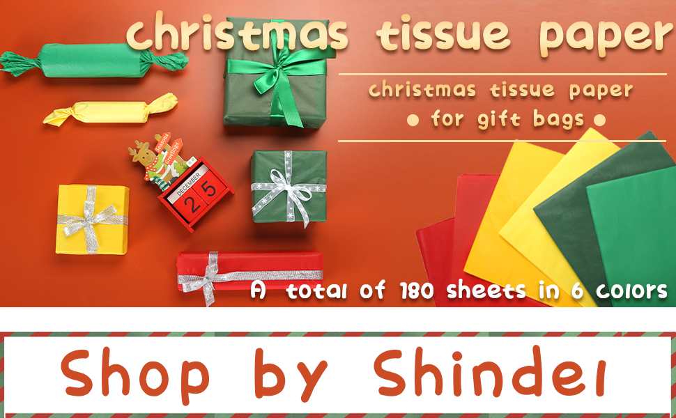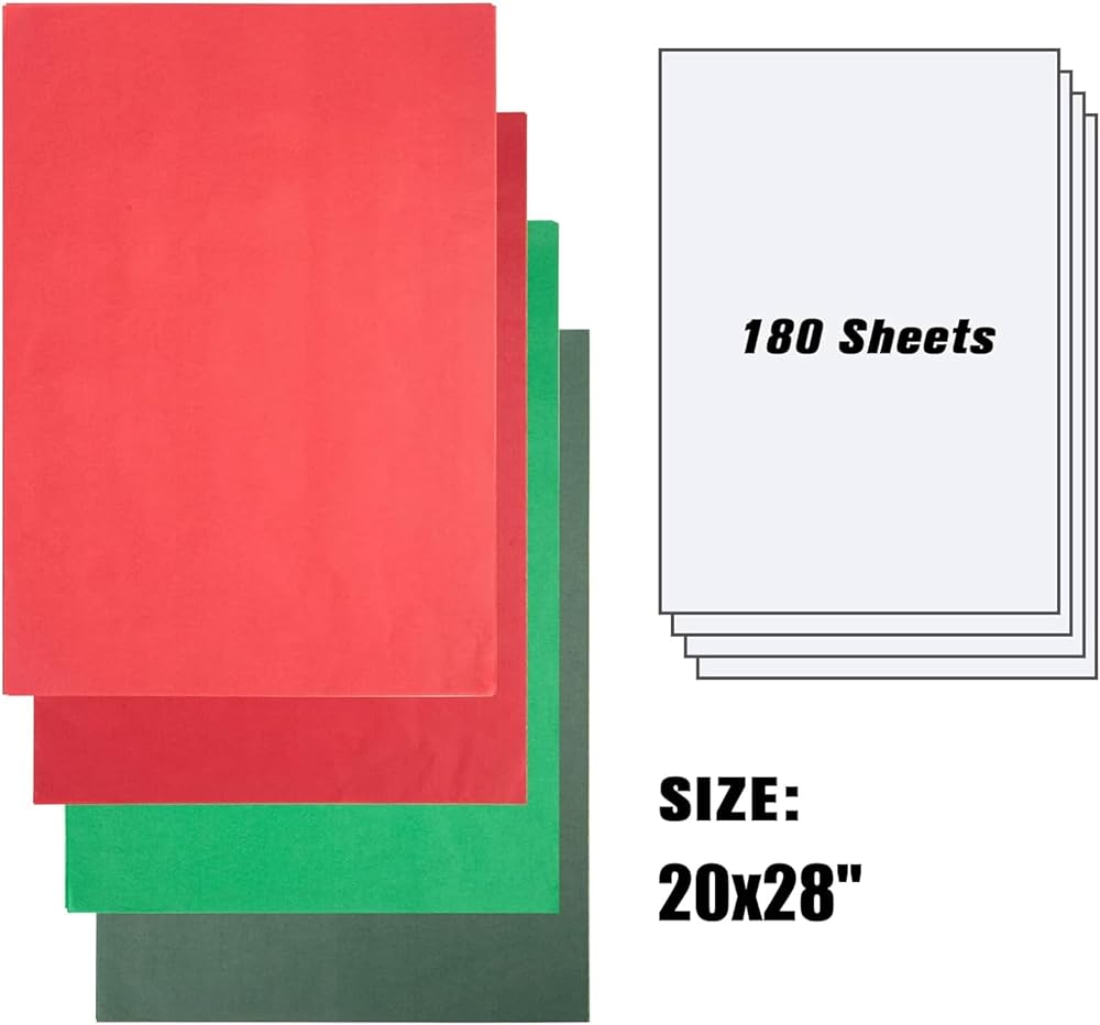 Shindel 180 ورقة مناديل ورقية لتغليف الهدايا، 20 × 28 بوصة مناديل عيد الميلاد لحقائب الهدايا هدايا عيد الميلاد وحرف العطلات