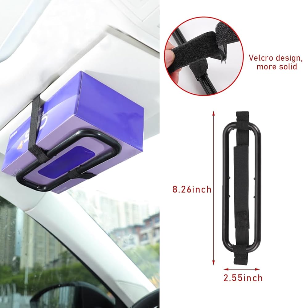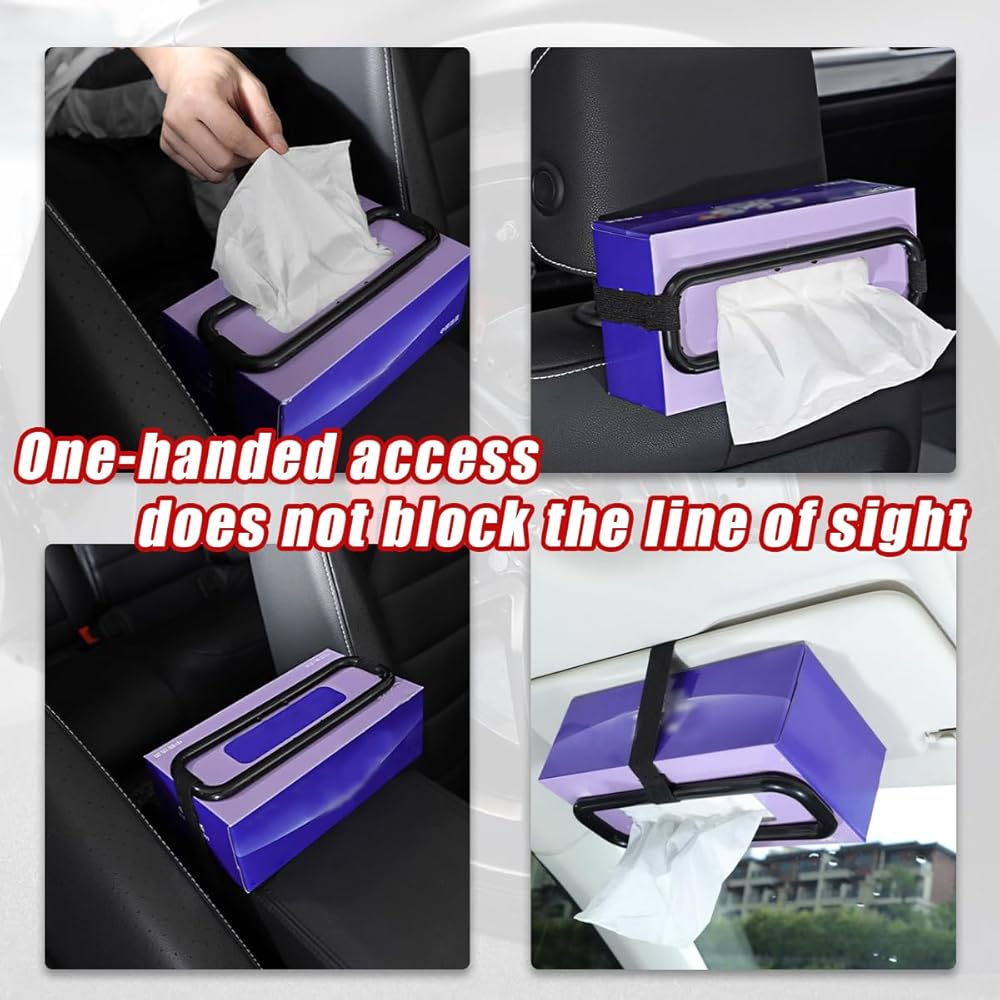 This tissue box frame can be tied to any size tissue box and can be tied anywhere in the car, such as sun visors, seat backs, armrests. It will give you a tidy space in your car!