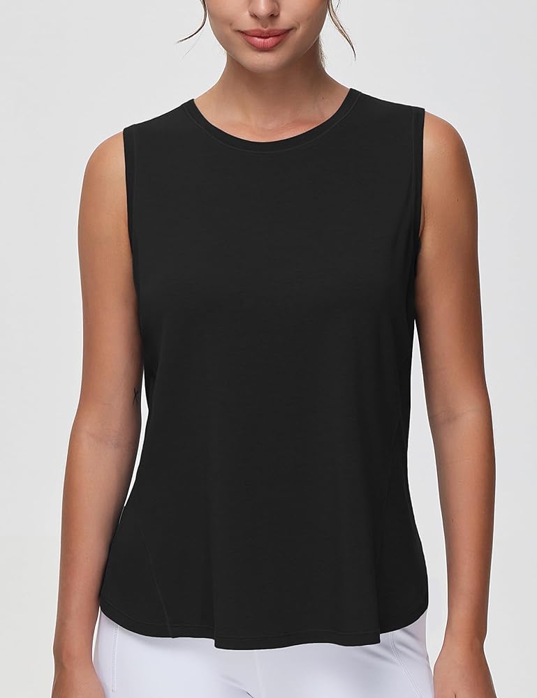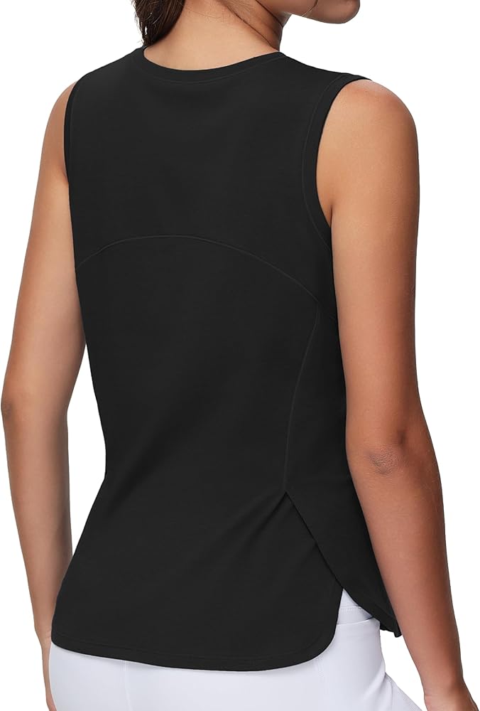 Soft and Breathable. The Women's Sleeveless Workout Shirts are made of 47.5% cotton, 47.5% Rayon, and 5% spandex, soft and comfortable, lightweight, breathable, cool, and skin-friendly.