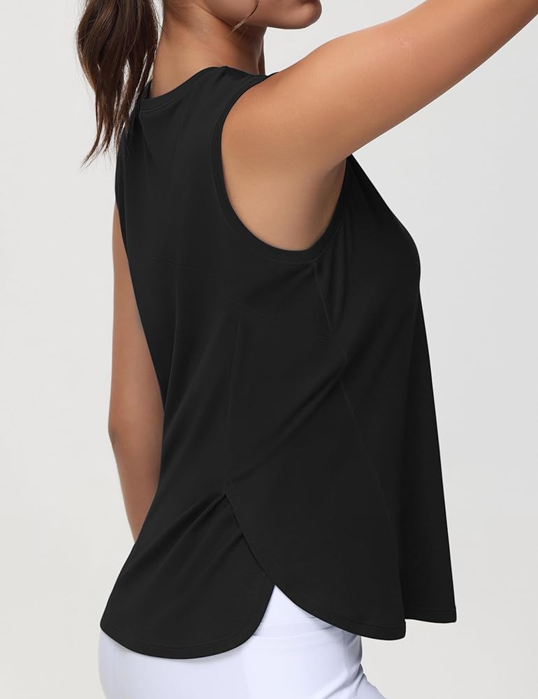 Slit Hem Design. This Yoga Tank Top For Women is designed with a stylish side slit and can be easily moved during exercise. The irregular hemlines allow to flatter the figure and cover the hips.