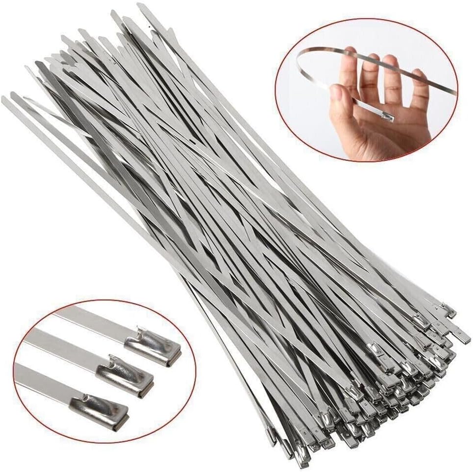 • UNIVERSAL APPLICATION - These stainless zip ties are perfect for outdoors, fence, gardens, farms, pipes, roofs, basements, auto application such as exhaust wraps, and more.