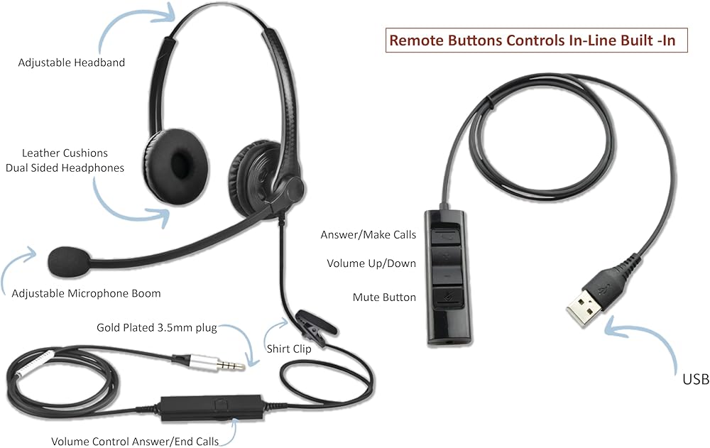 توافق واسع ومتعدد الأغراض: استخدام اتصال 3.5 ملم للتوصيل مباشرة بالهاتف الذكي أو الجهاز اللوحي. كما أن منفذ USB المضمّن القابل للفصل متوافق مع أنظمة التشغيل Windows 2000/7/8/10/XP/Vista وMac OS X ومعظم منصات UC الرائدة والهواتف الناعمة. مثالي للدورات التدريبية عبر الإنترنت ودردشة Skype ومركز الاتصال والمكالمات الجماعية.