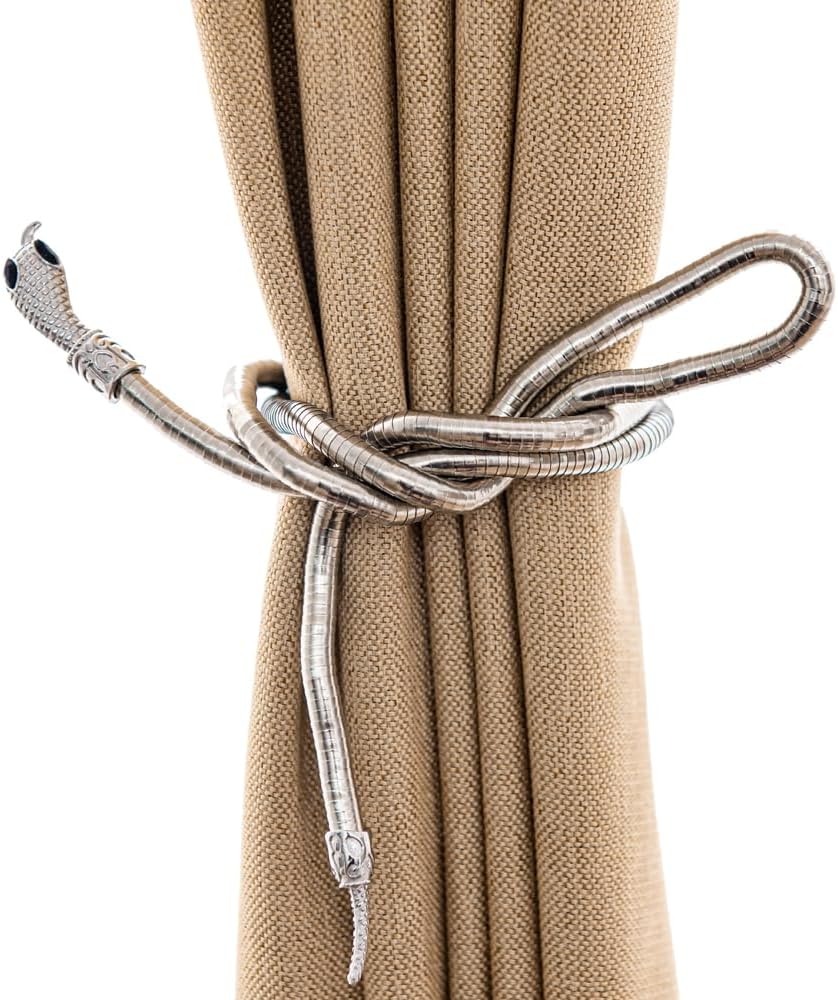 مادة معدنية على شكل ثعبان ملتوية بشكل تعسفي للستائر مشبك ستارة (مجموعة من 2) (ثعبان ملتوي فضي حسب الرغبة)