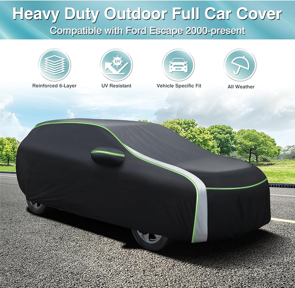 غطاء سيارة لسيارة Ford Escape 2000-2024، غطاء سيارة كامل مقاوم للماء لجميع الأحوال الجوية غطاء سيارة للهروب، غطاء سيارة خارجي مع سحاب باب شرائط عاكسة للأشعة فوق البنفسجية ومقاوم للرياح