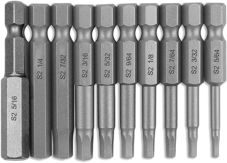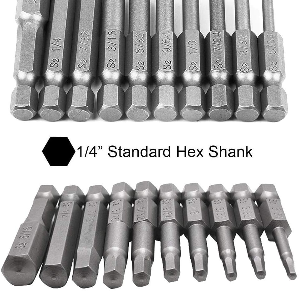 مجموعة لقم مفك براغي برأس سداسي داخلي مغناطيسي 5/64-5/16 10 قطع SAE رأس سداسي ألين مع ساق سداسية 1/4 بوصة، طول 50 مم