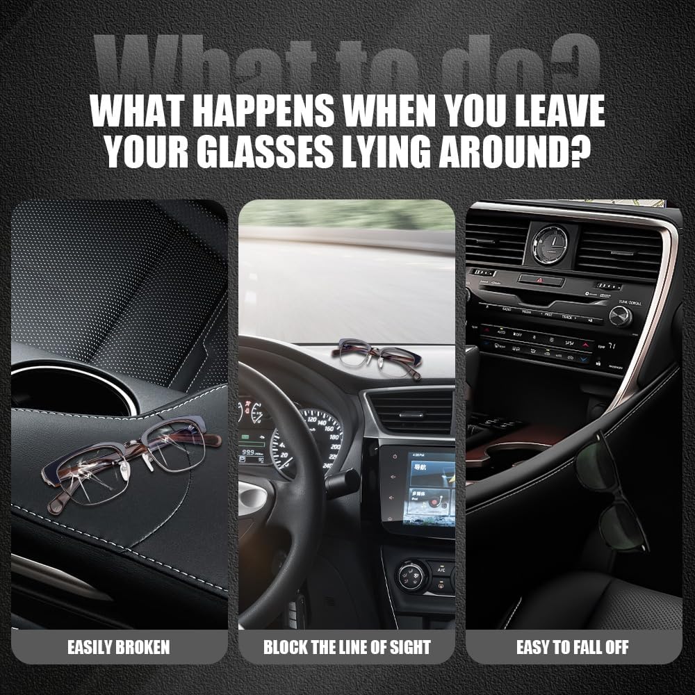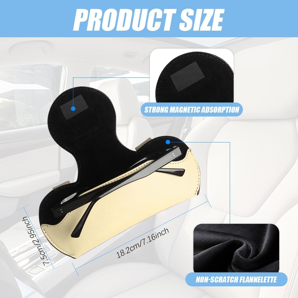 [Size]:This Universal Sunglasses Holder size 7.16*2.95 inch. Large capacity design can put ordinary glasses, but also put under sunglasses and other larger glasses. In order to avoid the size discrepancy, please measure the size of the glasses before you purchase.