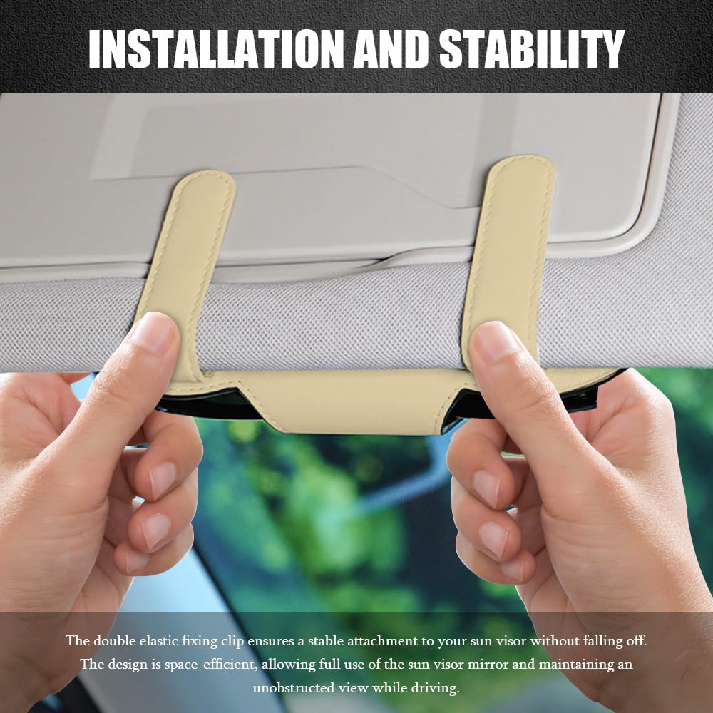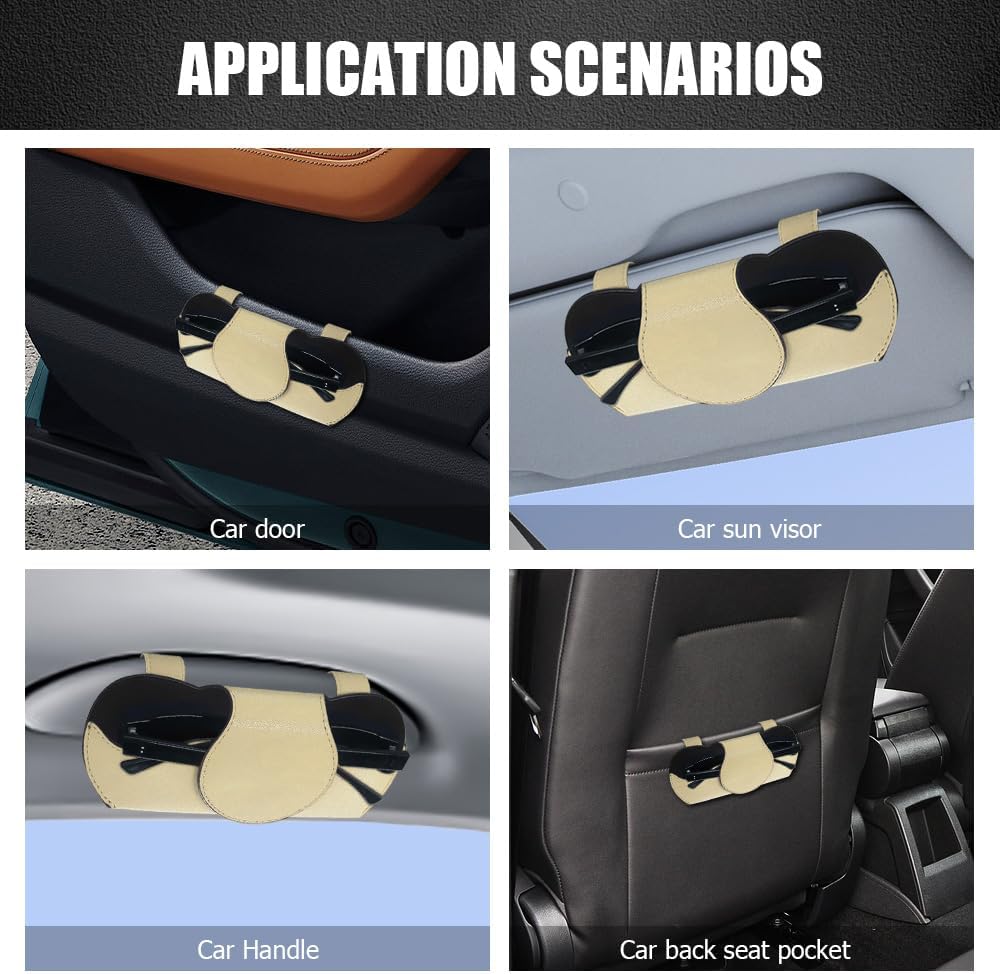 [Genuine Leather]:This Sunglass Holder for Car Visor is made of microfiber leather, soft texture is not easy to peel, and will not scratch the visor and affect the normal opening and closing of the visor.