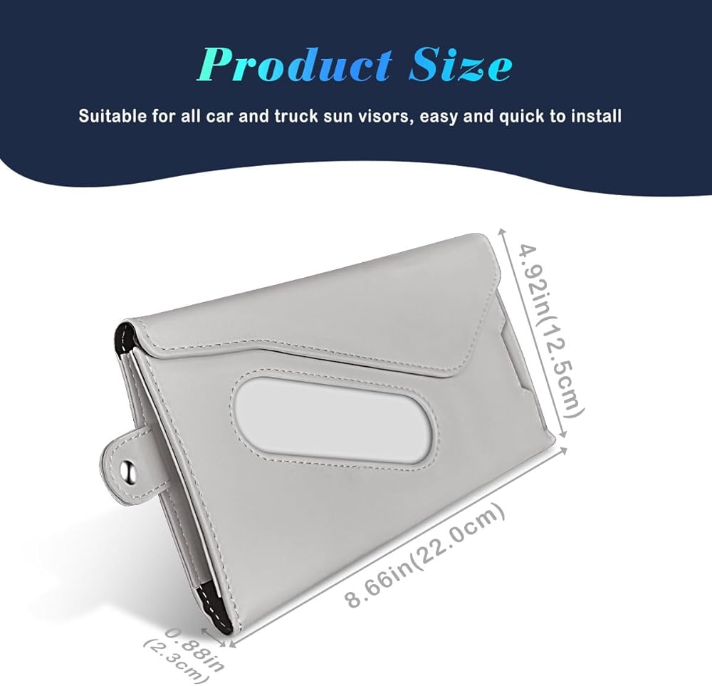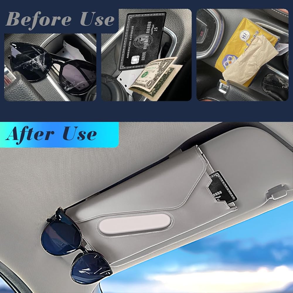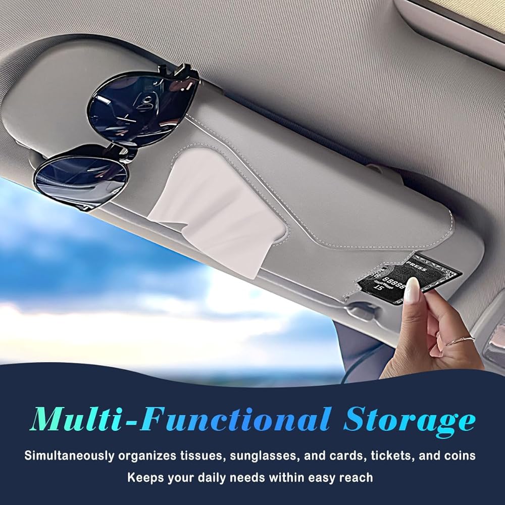 💎 CONVENIENT - I am used to placing the multifunctional car napkin holder on the driver's sunshade, which makes it very convenient to get in and out of the car and put sunglasses in. Sometimes, I also put some change in the card bag for backup, so I can get it directly when needed. This is really convenient.