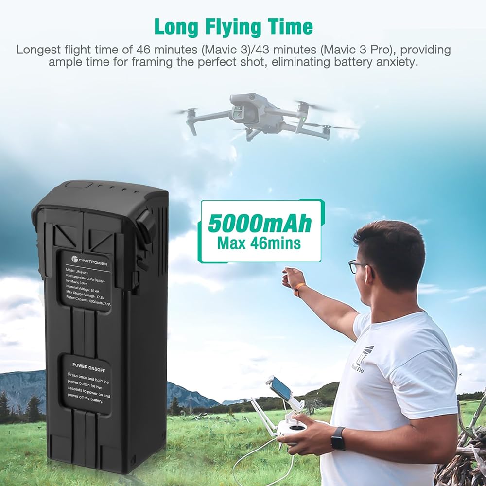 ✈️【متوافقة تمامًا مع سلسلة DJI Mavic 3】بطارية طيران ذكية بديلة من FirstPower Mavic 3 Pro لـ DJI Mavic 3، DJI Mavic 3 Pro، DJI Mavic 3 Pro Cine، DJI Mavic 3 Classic، DJI Mavic 3 Cine، DJI Mavic 3 Enterprise Series بدون طيار . ملاحظة: تحديثات البرامج الثابتة غير مدعومة. يرجى استخدام البطارية الأصلية للتحديث.