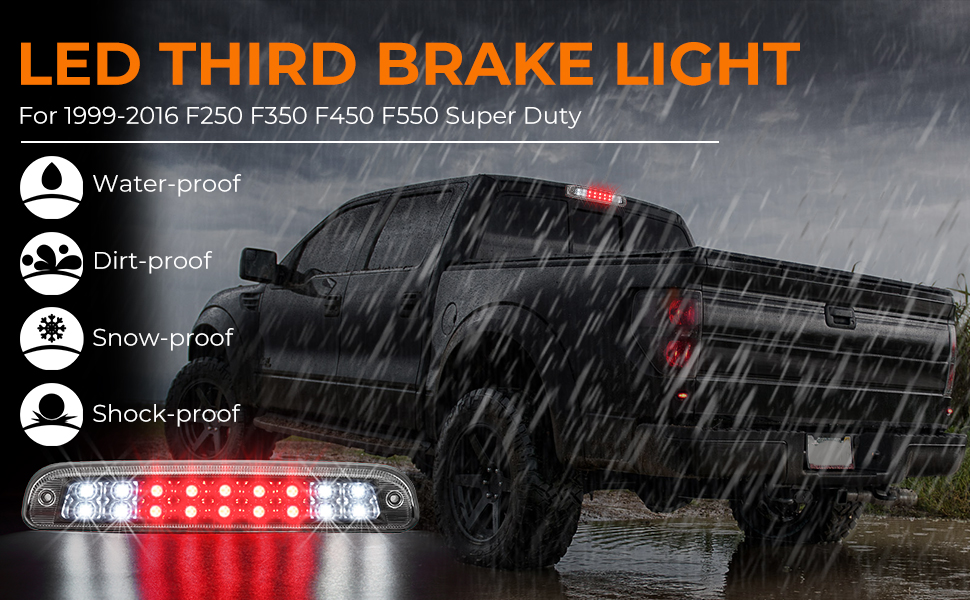 【ملاءمة مباشرة من صانع المعدات الأصلية】مصباح فرامل LED ثالث متوافق مع 1999-2016 F250 F350 F450 F550 Super Duty 1993-2011 Ranger. للحصول على ملاءمة أفضل، يوصى باستخدام براغي المصنع.