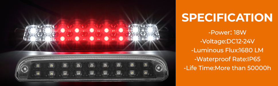 【مصباح الفرامل الثالث المقاوم للماء IP67】مبطن بإسفنج 5 مم يمنع تسرب الماء. تأكد من أن ضوء الفرامل الثالث هذا سيعمل بشكل مثالي في جميع الأحوال الجوية.