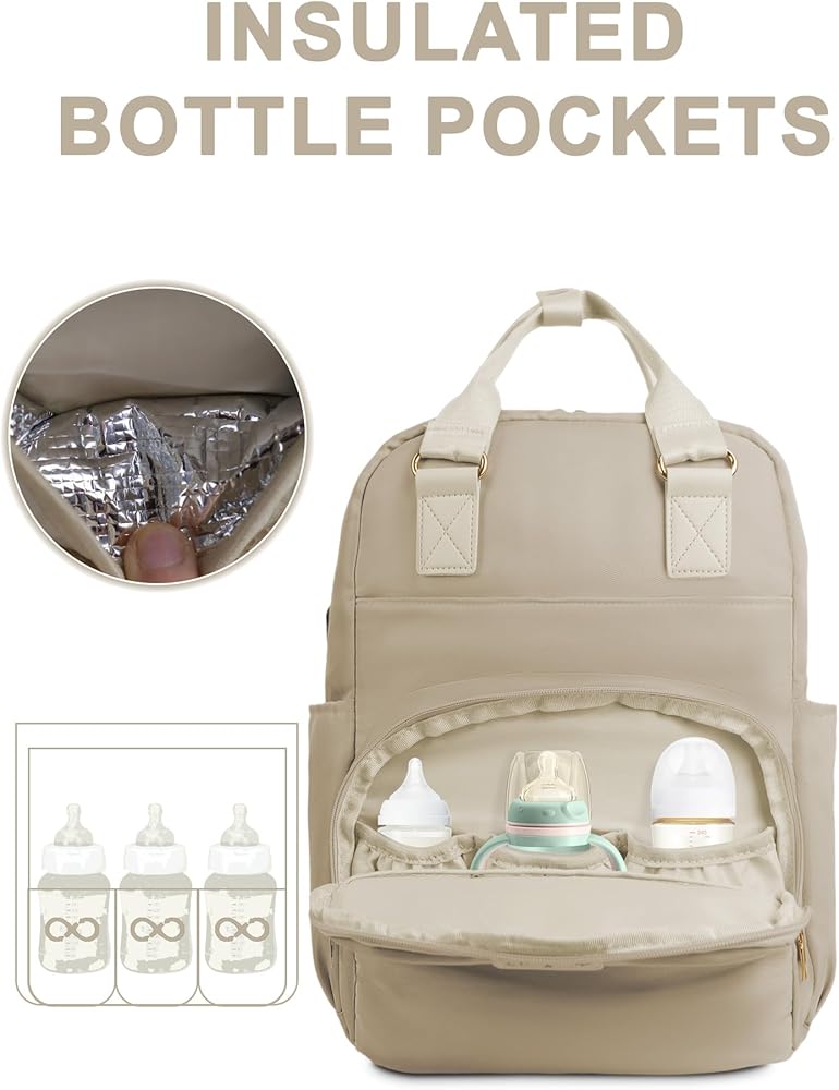 🍼 جيوب معززة لزجاجات الرضاعة: تحتوي حقيبة ظهر مانيتا لتغيير الحفاضات على 3 جيوب دافئة معزولة للزجاجات بسعة 3-9 أونصة عريضة أو رفيعة وجيب مرن للملعقة والشوكة. حافظ على زجاجات الأطفال دافئة/باردة في الجيوب المعزولة، وهي رائعة للخروج مع الطفل ليوم طويل!
