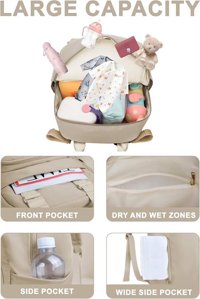 🍼 حقيبة ظهر عملية لتغيير حفاضات الأطفال: هذه حقيبة ظهر لتغيير الحفاضات مليئة بالتفاصيل مصممة للحظات عندما تكون بالخارج مع طفلك. حقيبة أطفال مثالية بقياس 15.4 × 11.8 × 10.2 بوصة، وسعة 21 لتر، وحجرتين كبيرتين للإغلاق بسحاب، وجيب جانبي لموزع المناديل المبللة، وجيب خلفي مضاد للسرقة، وإجمالي 14 جيبًا وتتميز بمشابك عربات التي تجرها الدواب مدمجة، واسعة بما يكفي لحمل معظم الأشخاص. من مستلزمات الأطفال الأساسية ولا تزال تبدو منظمة وصغيرة الحجم بشكل مثالي.