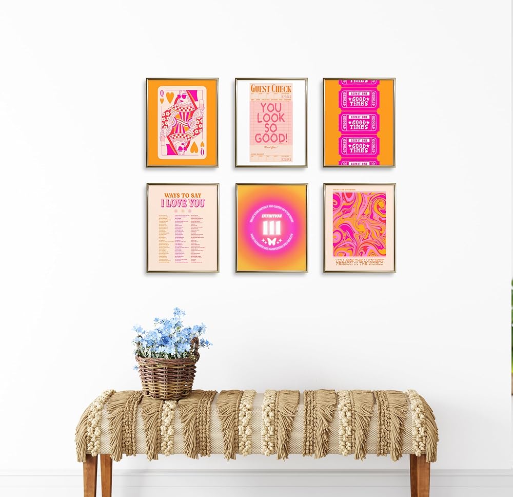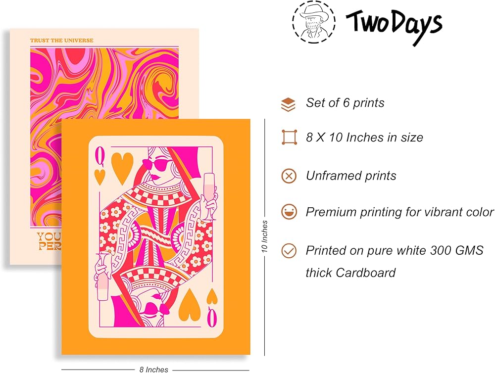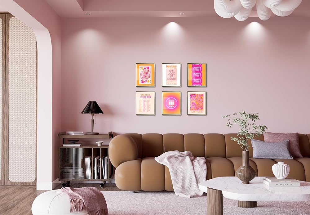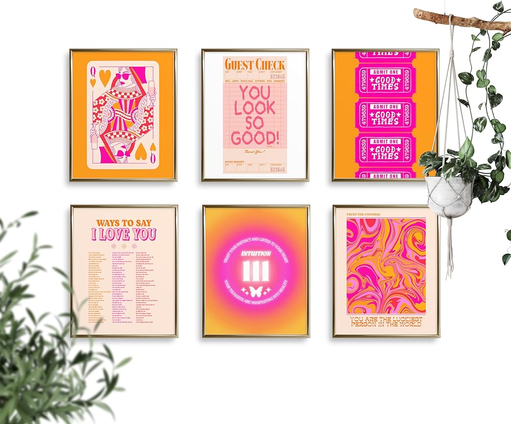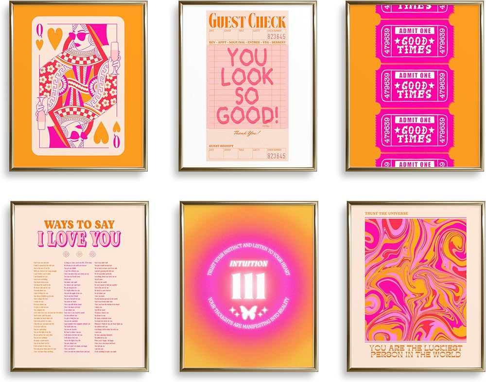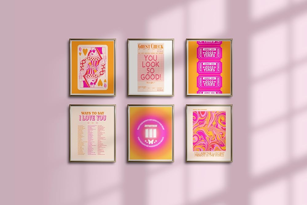 لوحة فنية جدارية كلاسيكية عصرية من TwoDays، ديكور جمالي لغرفة بريبي باللون الوردي، ملصق لطيف للفتيات المراهقات في شقة Lucky Queen، صور تأكيد غير تقليدية، مطبوعات أرقام الملاك (8 بوصة × 10 بوصة، مجموعة من 6 قطع، غير مؤطرة)
