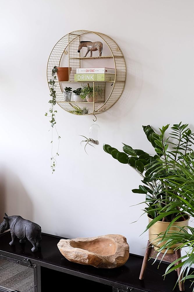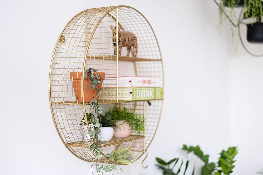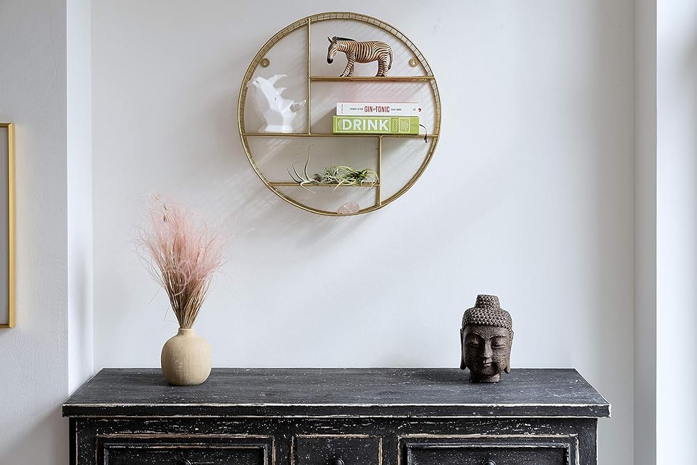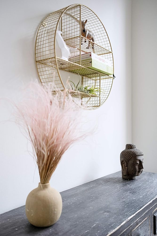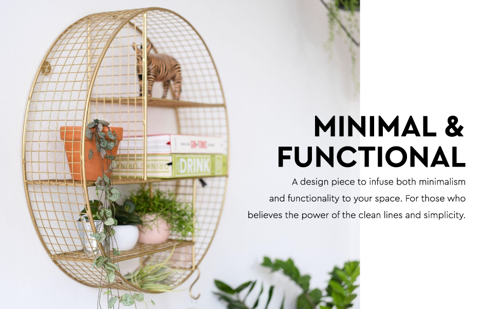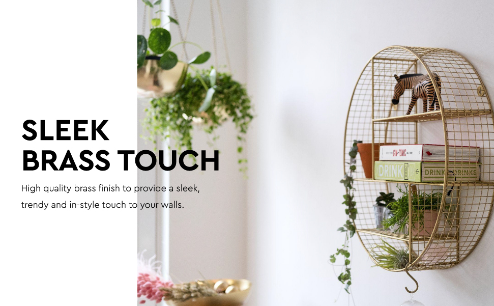 لمسة نهائية ذهبية ساحرة: قم بإضفاء الحيوية على مساحتك بأجواء ذهبية فاخرة. يضمن اللمسة النهائية الذهبية عالية الجودة أن يصبح هذا الرف نقطة محورية، مما يجذب الانتباه والأوسمة كقطعة مركزية زخرفية لا تُنسى.