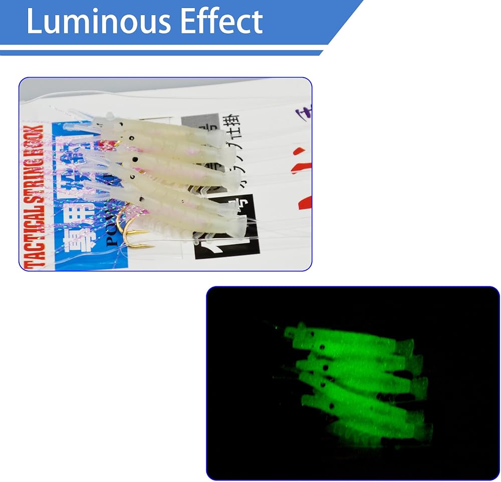 4/10 Packs Fishing Rigs Luminous Shrimps Lure Fishing Sabiki Rigs Glow in The Dark Saltwater Fishing Lure Bait Catching with Hook Fishing Gear