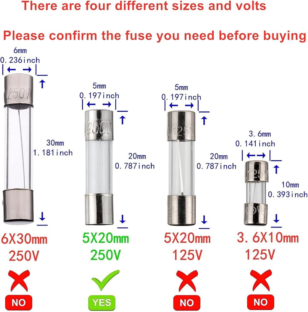 20 قطعة T1.6AL250V صمامات زجاجية بطيئة النفخ 5x20 مللي متر فاصل زمني 1.6 أمبير
