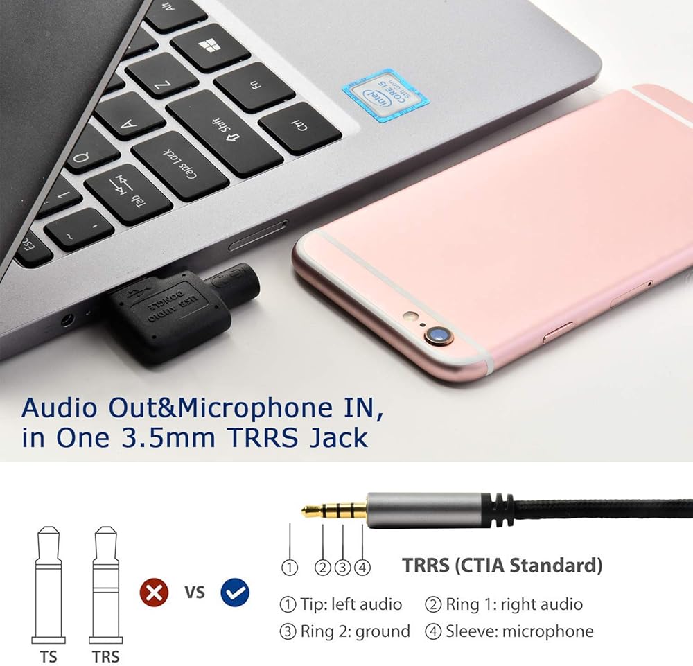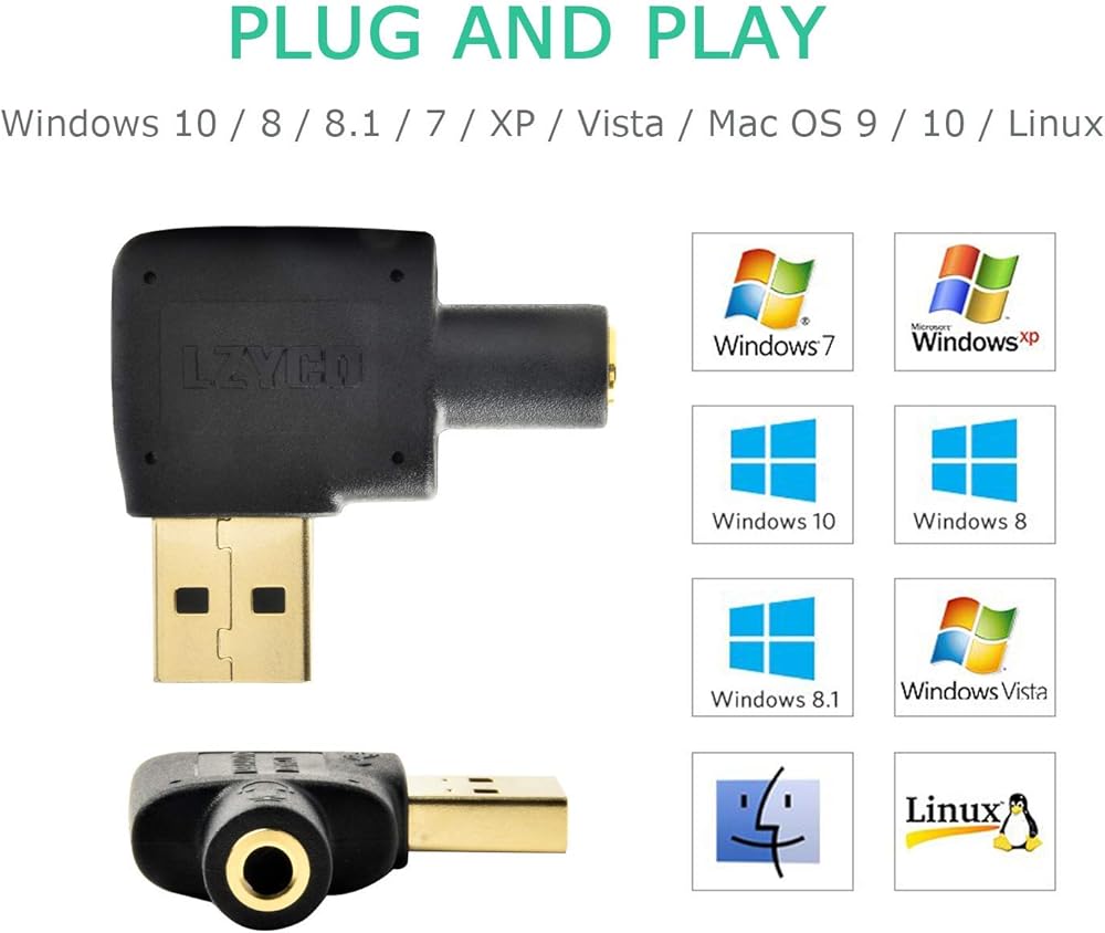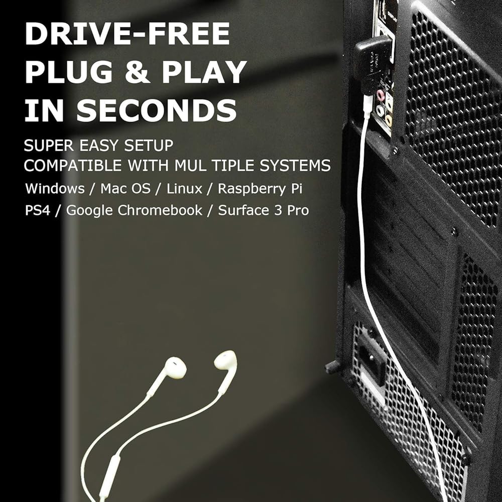 بسيط وسهل الاستخدام: فقط قم بتوصيل USB بمحول مقبس الصوت وسيقوم جهاز الكمبيوتر الخاص بك تلقائيًا بتثبيت برنامج التشغيل الضروري (استغرق أقل من 30 ثانية).