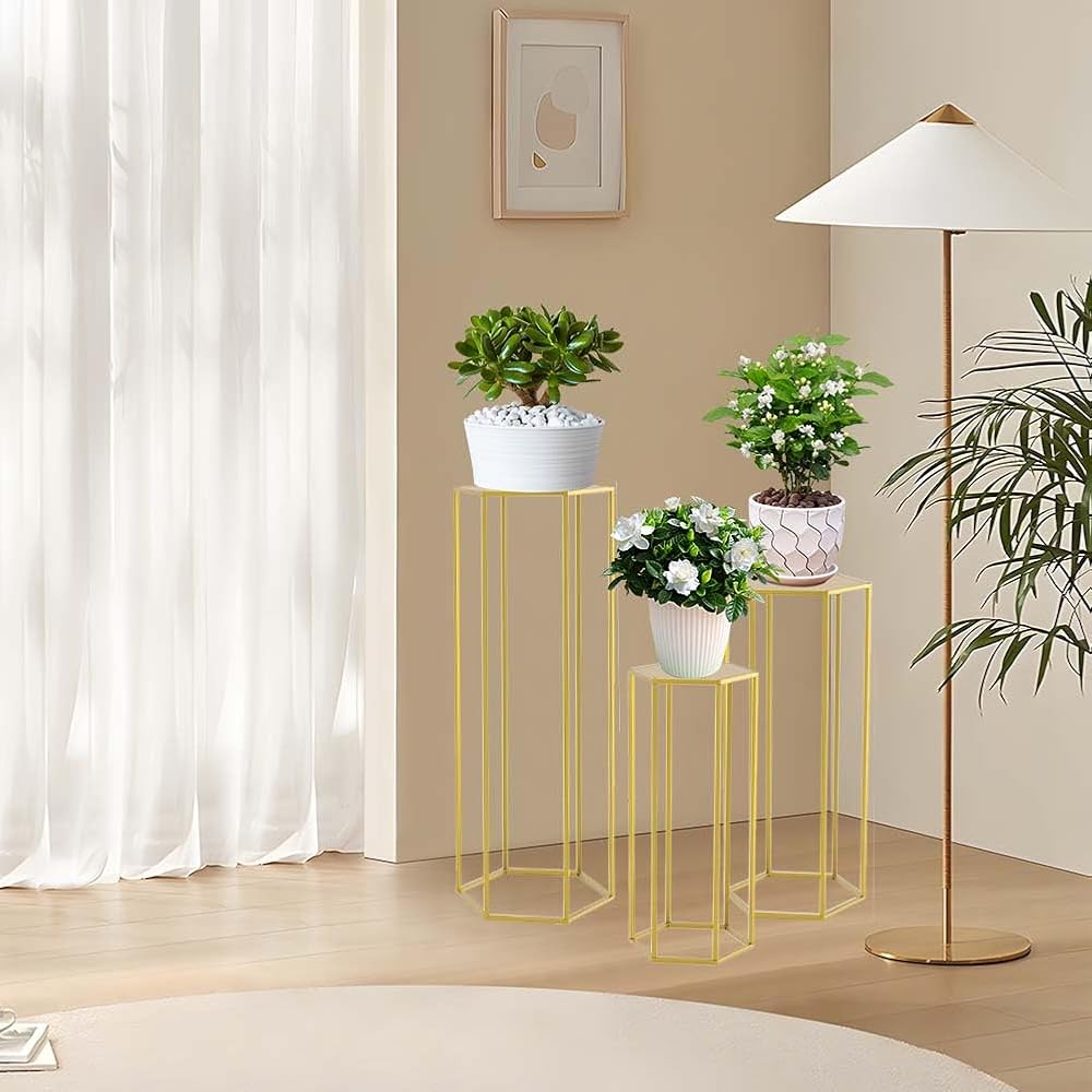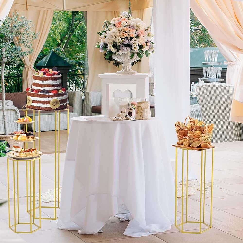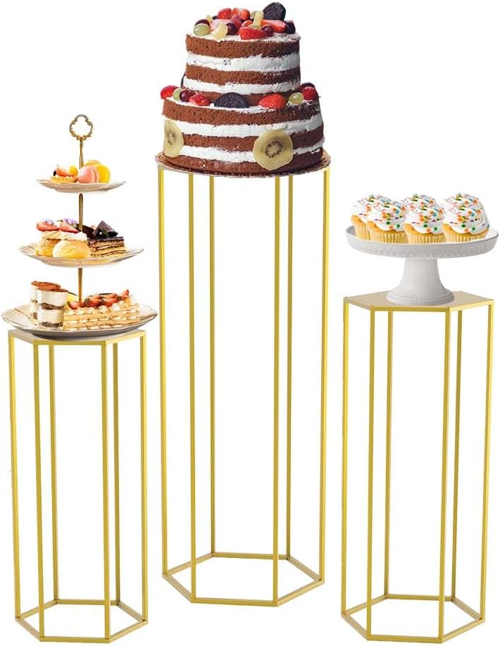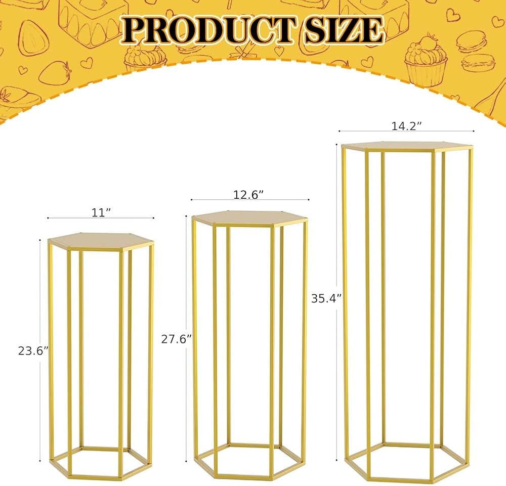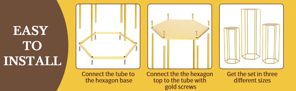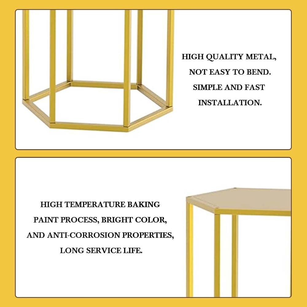قطعة مركزية هندسية لحفل الزفاف: تتميز الركائز الذهبية السداسية لدينا بأنها بسيطة ومتعددة الاستخدامات ومصممة بشكل ساحر بتصميم أنيق. إنها طريقة رائعة لعرض تنسيقات الأزهار لحفلات الزفاف أو إضافة بُعد إلى خلفية الصور. سيعزز اللون الذهبي المميز النمط الرومانسي لقطع طاولتك المركزية.