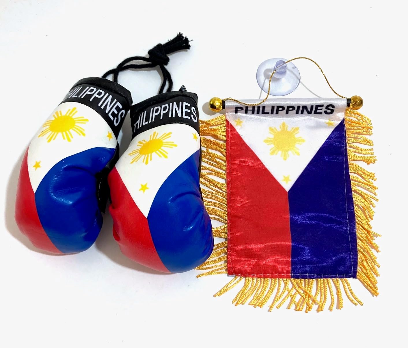 مجموعة قفازات العلم والملاكمة الفلبينية - إكسسوارات السيارة، المنزل، الجدار، الباب، تزيين النوافذ - هدايا فلبينية