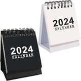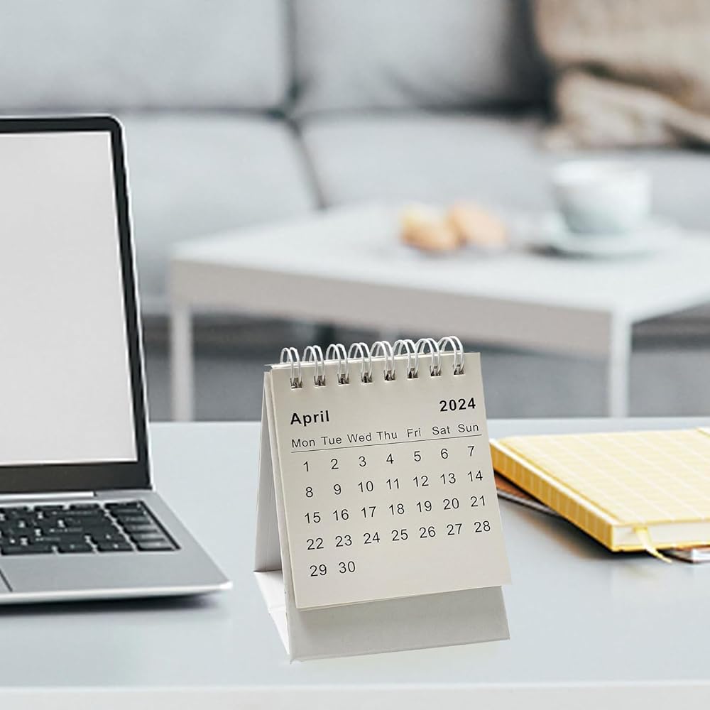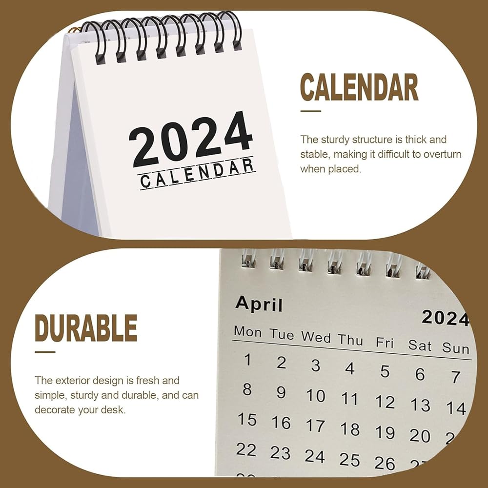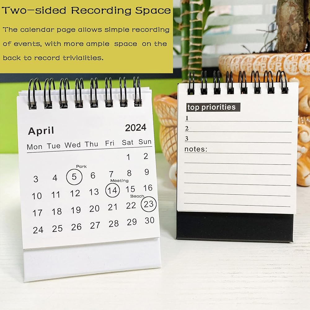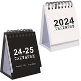 2 حزمة تقويم مكتب صغير، تقويم صغير 2024، يناير 2024 إلى يونيو 2025، الحد الأدنى 3 × 4 بوصة تقويم سطح المكتب القابل للطي مع ملف أسود لديكورات مكتب المنزل والمكتب المدرسي (أبيض)