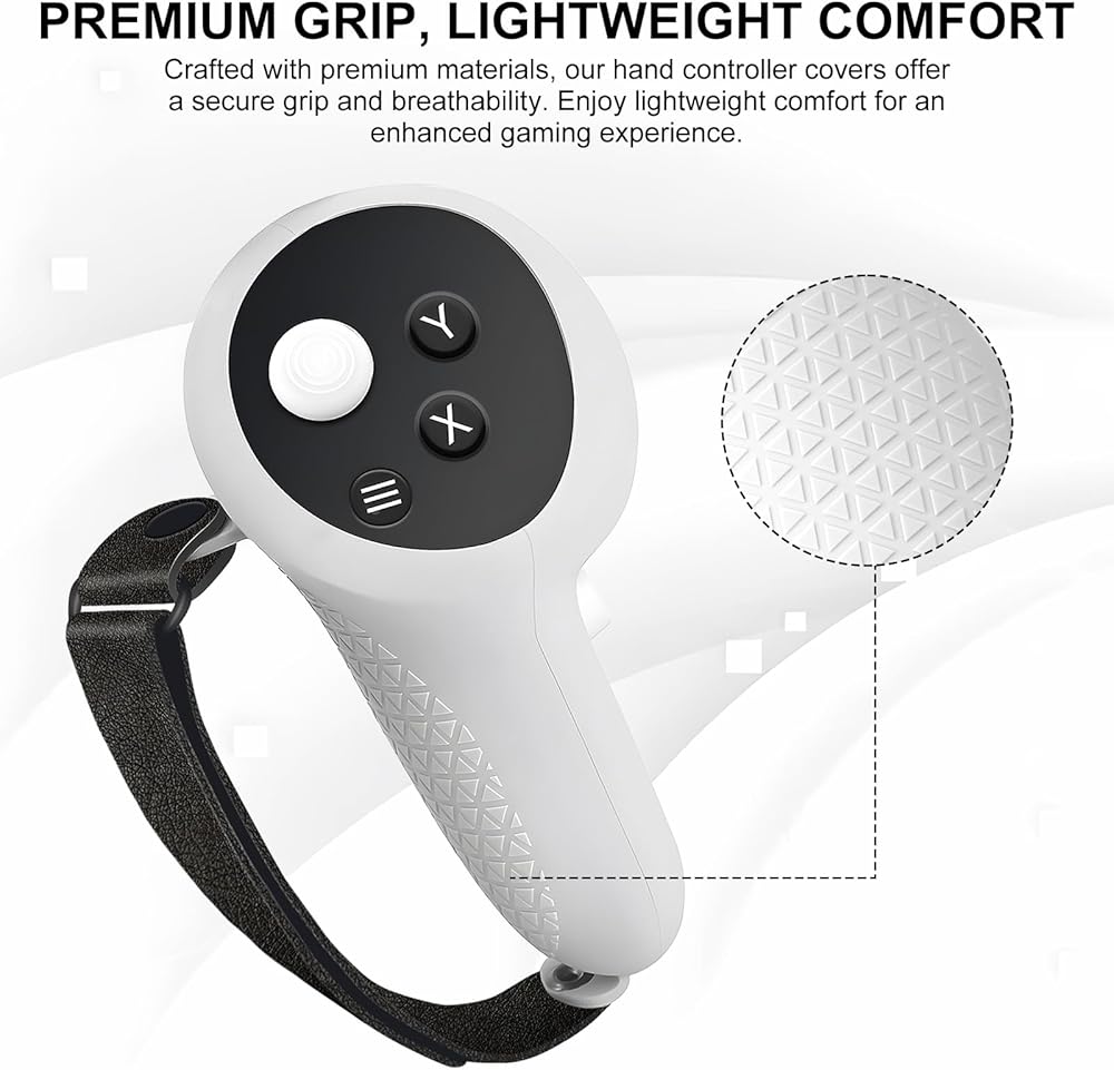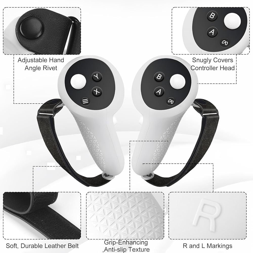 راحة سلسة، إشارات موثوقة - تمتع براحة لا مثيل لها مع أحزمة المفاصل الثلاثة المصنوعة من السيليكون، والتي تتميز بفتحات إشارة استراتيجية لاتصال موثوق. انغمس في عالم الألعاب المثالية حيث تجتمع الراحة مع الإشارات الدقيقة، مما يعزز تجربة الواقع الافتراضي لديك.