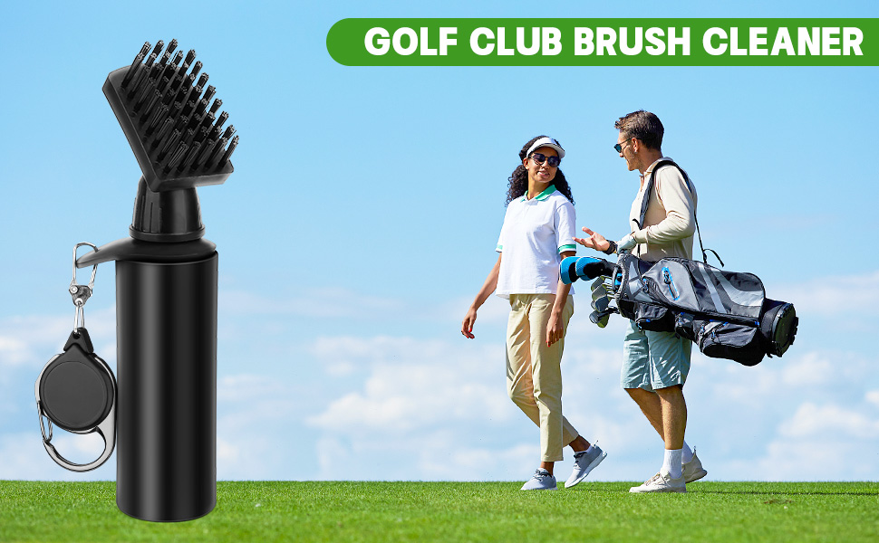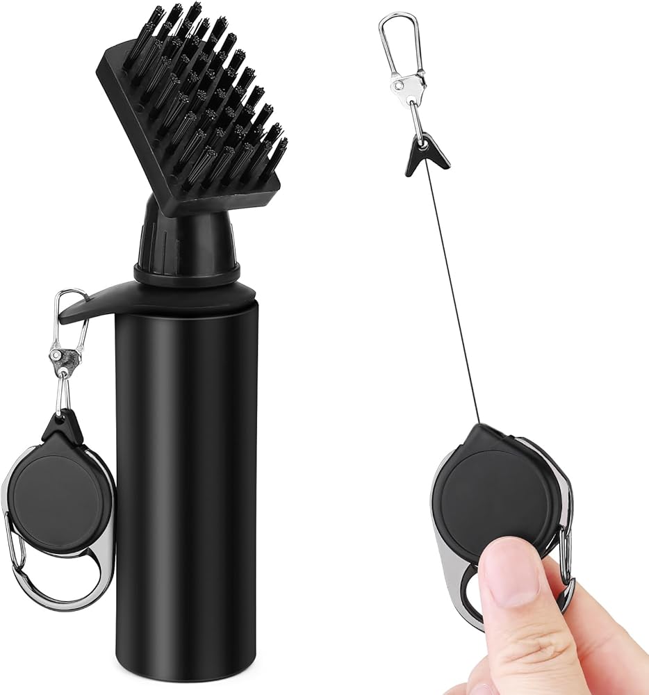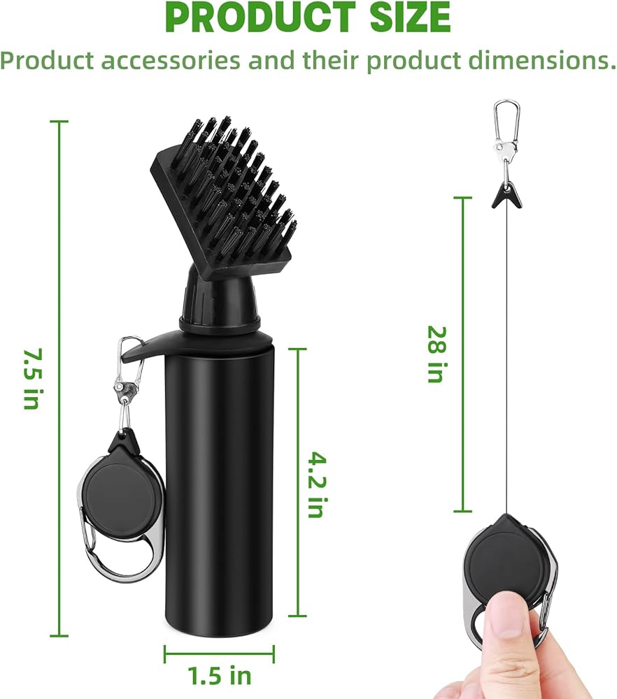 فرشاة تنظيف نادي الجولف، منظف نادي الجولف مع زجاجة مياه مضغوطة (4 أونصات) وخطاف قابل للسحب لسهولة التنظيف، هدية إكسسوارات الجولف الأكثر ملاءمة للرجال والنساء