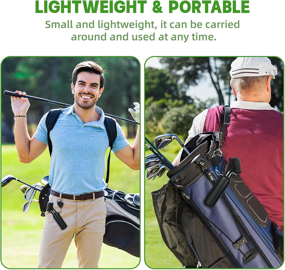 ✅ تنظيف سريع وفعال - تحتوي أداة فرشاة الجولف هذه على 4 أونصة من الماء، فقط اضغط على الماء لتنظيف رأس نادي الجولف. يسمح لك بالتبديل بين التنظيف الرطب والجاف في ملعب الجولف.