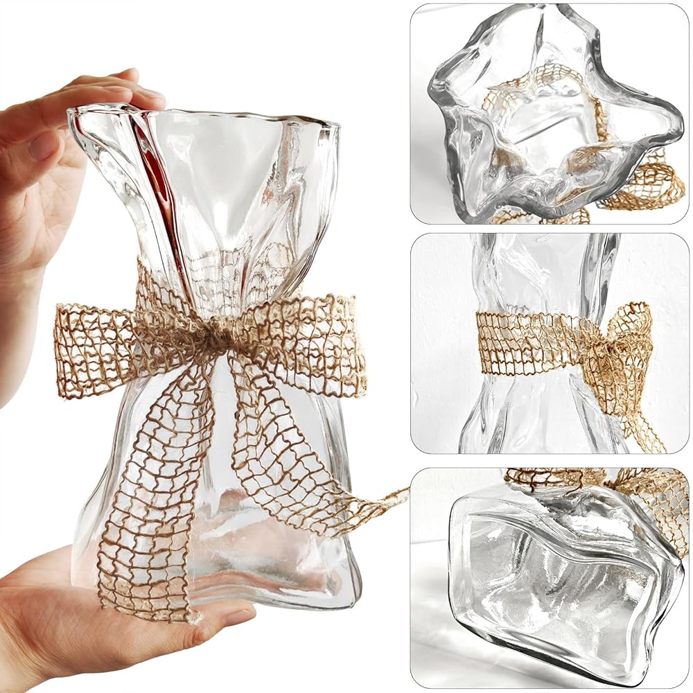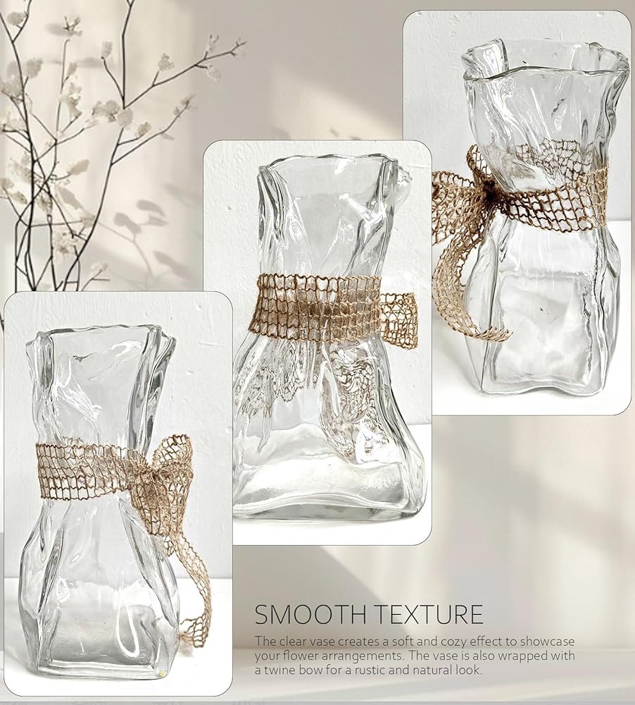 This vase is made of thick and sturdy glass, soft twisted-crimped design that creates a unique texture and shape.