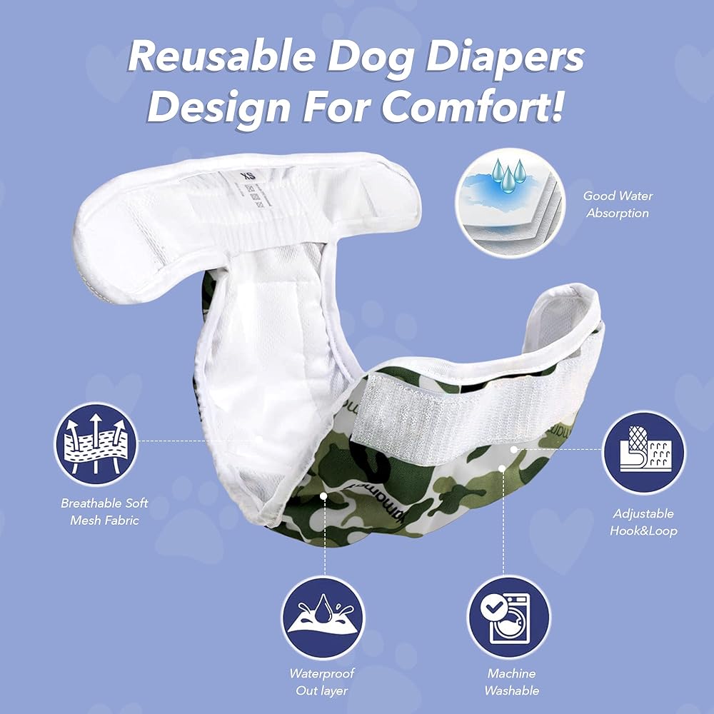 【مادة ماصة ومتينة】حفاضات الكلاب مصنوعة من شبكة بوليستر متينة وماصة، وطبقات داخلية من الألياف الدقيقة وطبقة خارجية مقاومة للماء تمنع التسربات والأضرار التي تلحق بالسجاد والسجاد والأرائك. مفيد للجراء غير المدربة، والإناث في الموسم، والحيوانات الأليفة التي تعاني من سلس البول